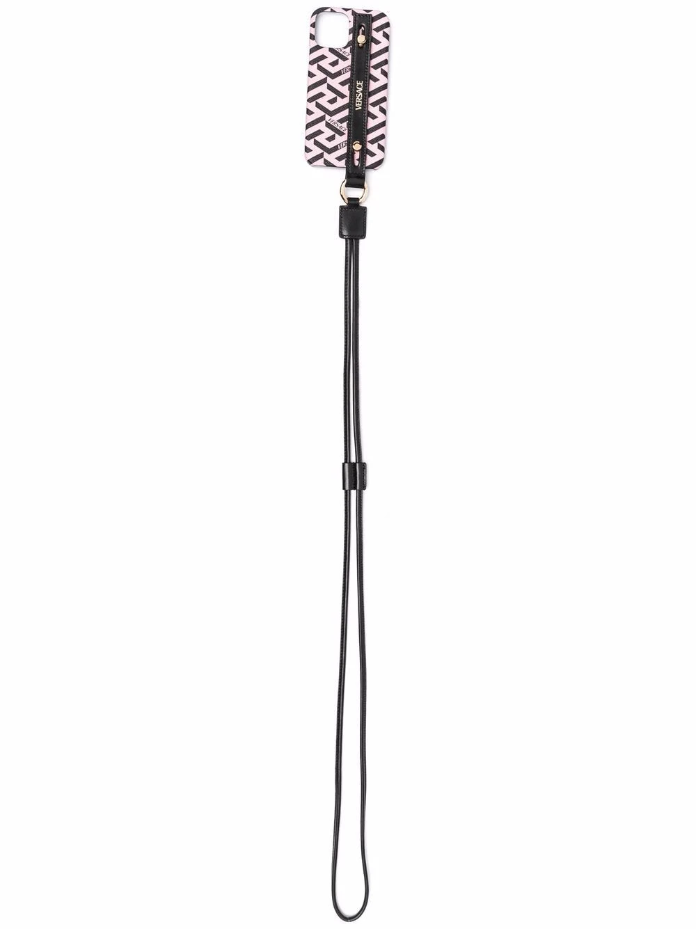 Imprimé La Greca signature, bride porté autour du cou détachable, finitions en métal doré.