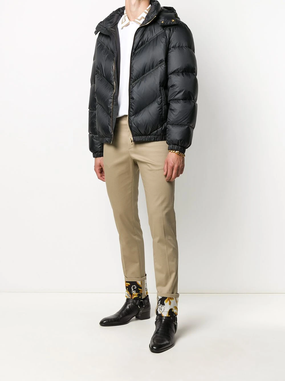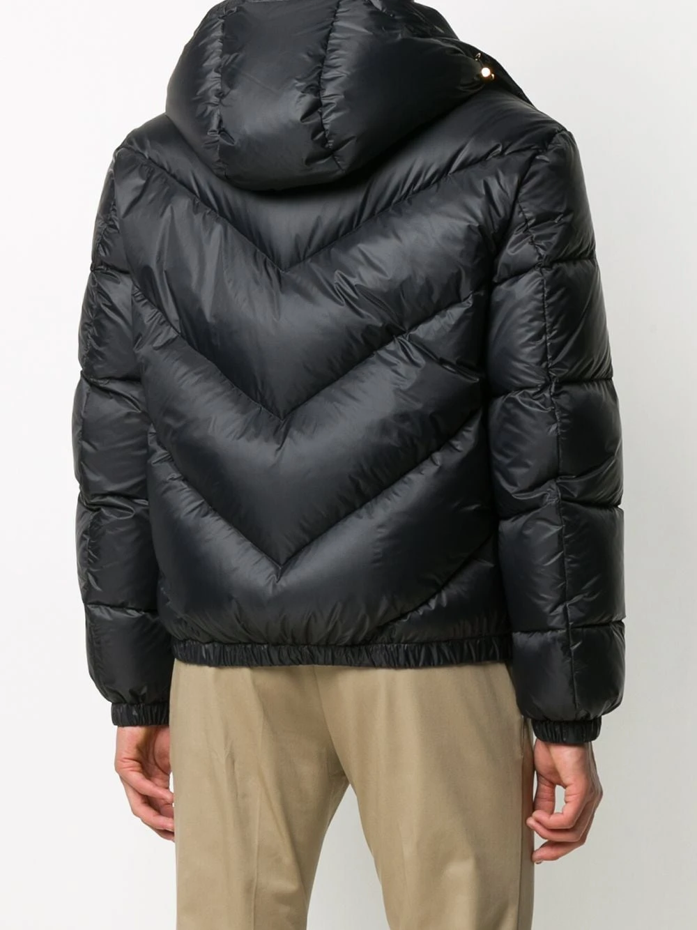Capuche classique, fermeture zippée devant, manches longues, poignets élastiqués, poches latérales fendues. Couleur : noir. Matière : DUVET.