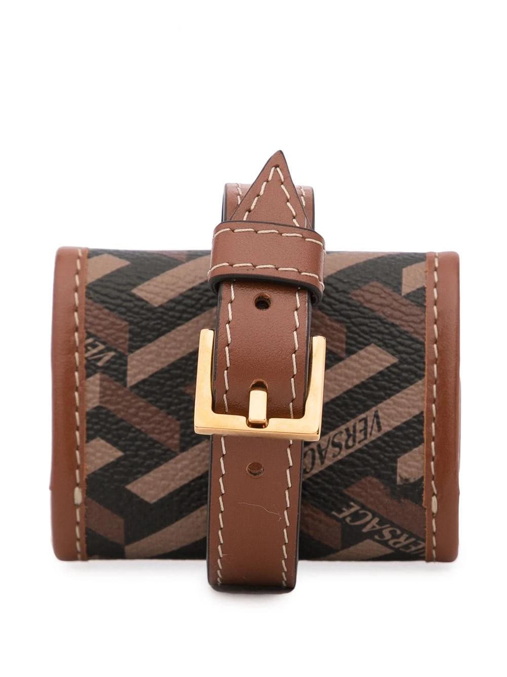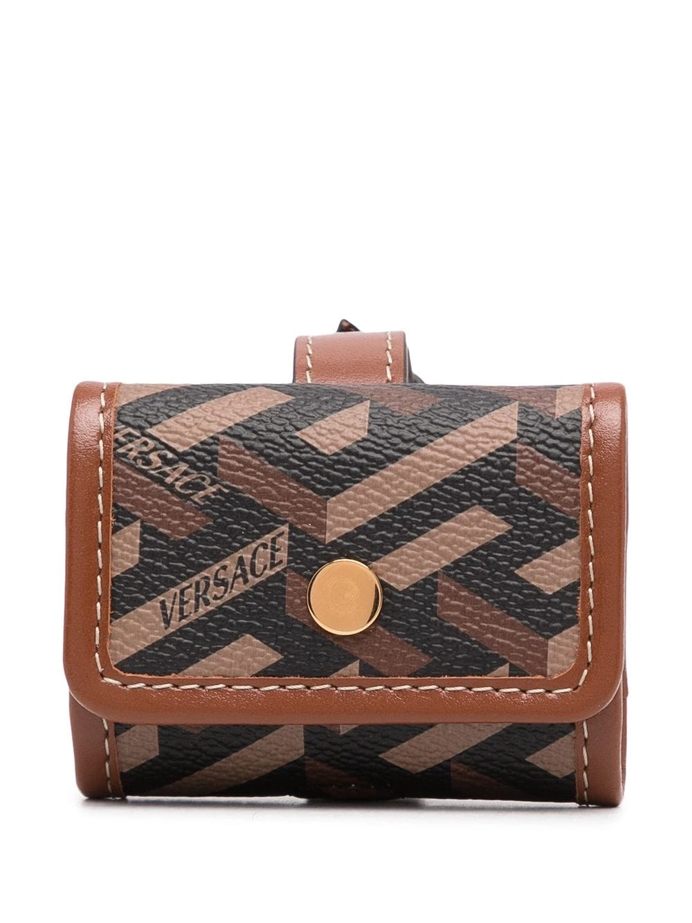 Motif Greca signature imprimé, imprimé monogrammé, dessus à rabat avec bouton pression, coutures contrastantes, fermeture à boucle.