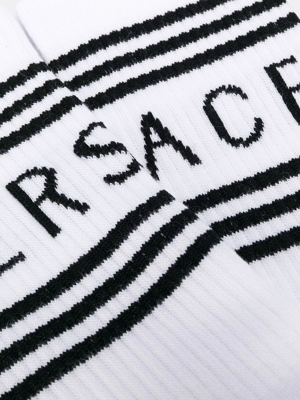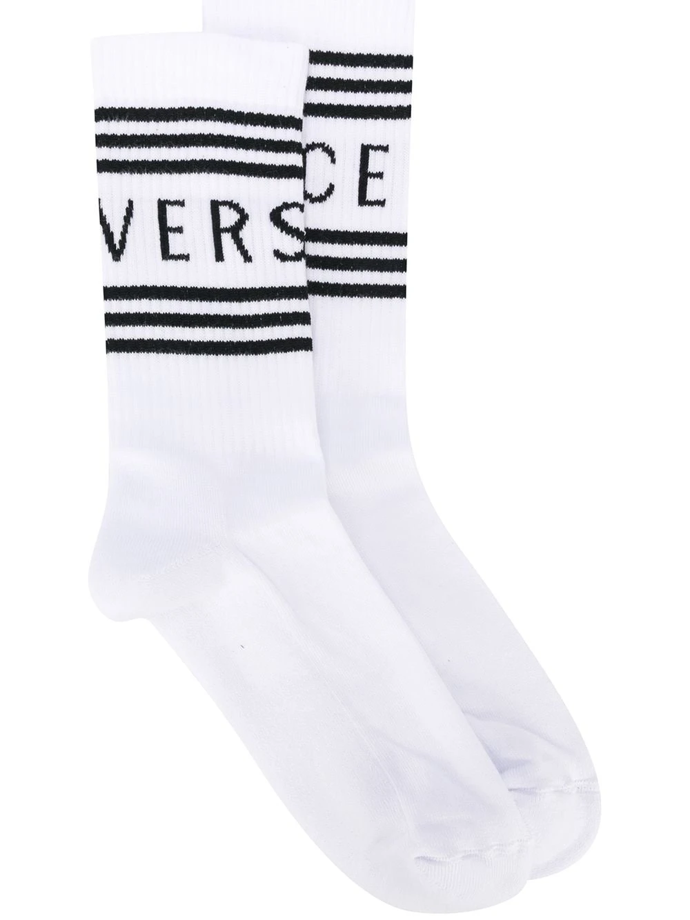 Chaussettes à logo intarsia en coton Versace. Couleur : blanc. Les chaussettes et la bonneterie doivent être retournés dans leur emballage d’origine.