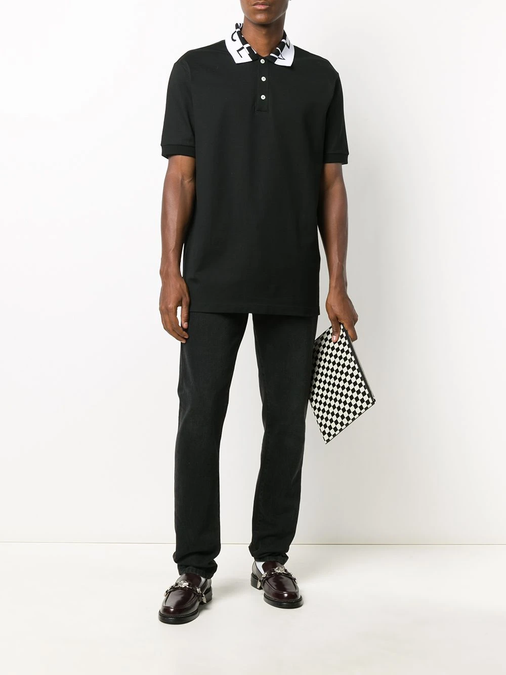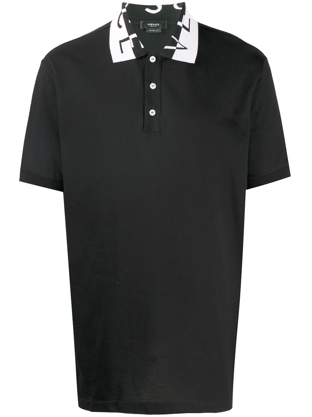 Polo en coton à col à logo Versace avec col polo, col boutonné et manches courtes. Couleur: noir.