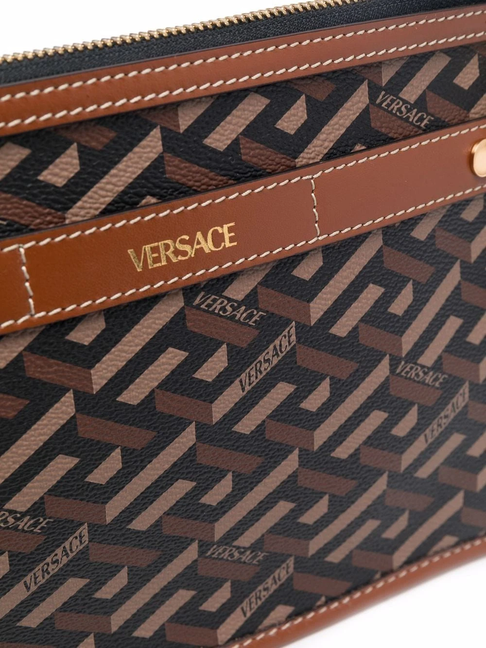 Imprimé monogrammé, logo imprimé sur le devant, bride porté épaule ajustable, fermeture zippée sur le dessus, patch logo intérieur. Couleur : marron. Matière : cuir.