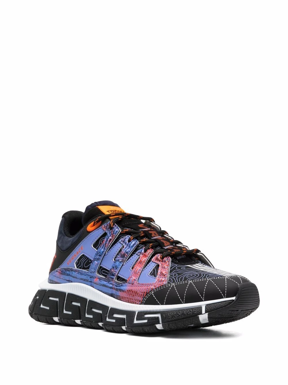 Détail Greca signature, languette à patch logo, semelle intérieure à logo, bout rond, fermeture à lacer sur le devant, semelle en caoutchouc.