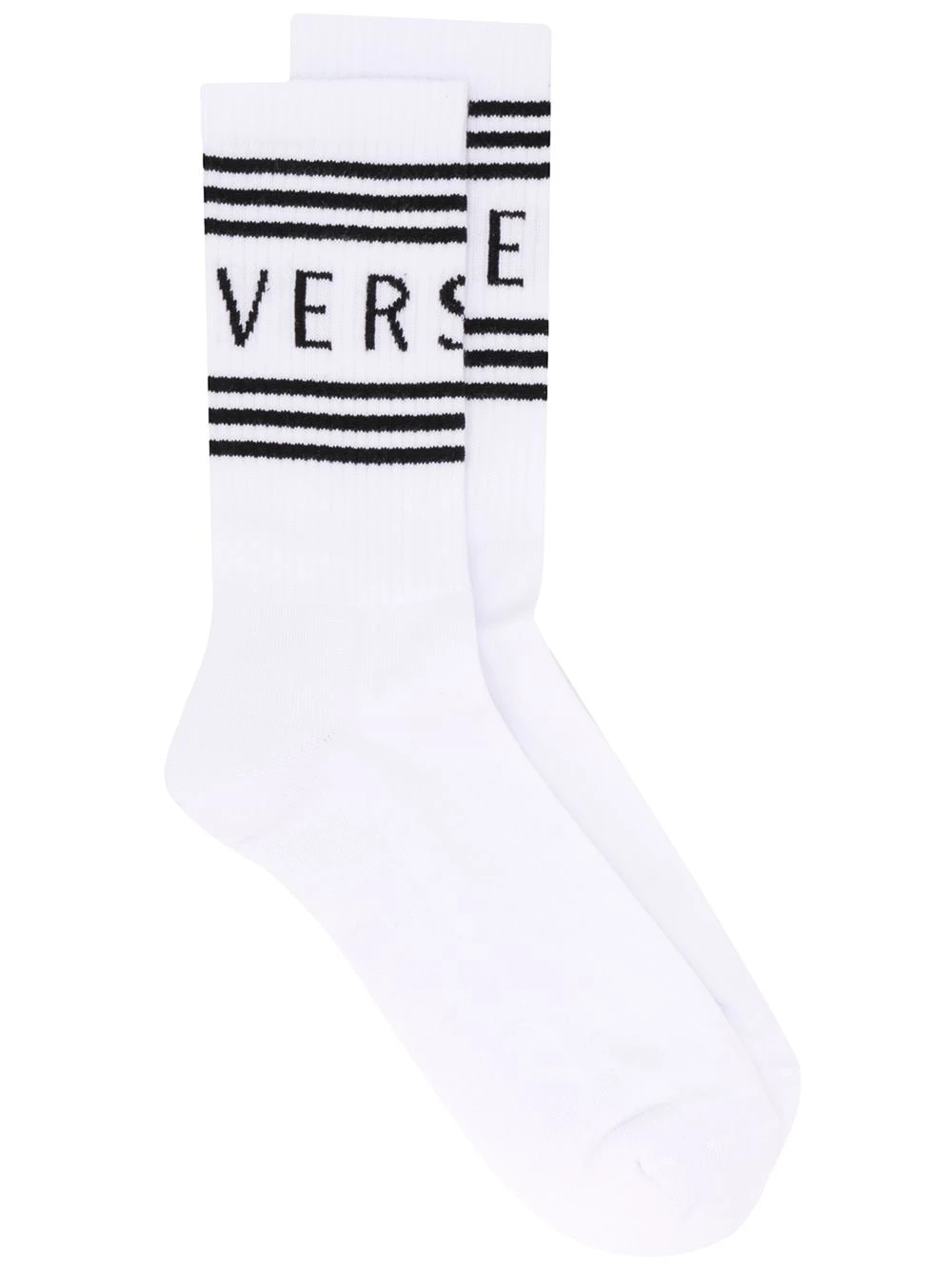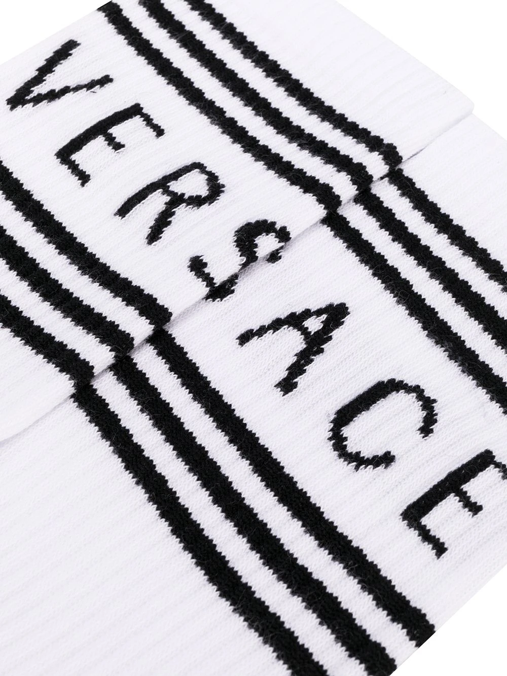 Chaussettes à logo imprimé en coton mélangé Versace avec motif de rayures, logo imprimé, coupe stretch et détails nervurés.