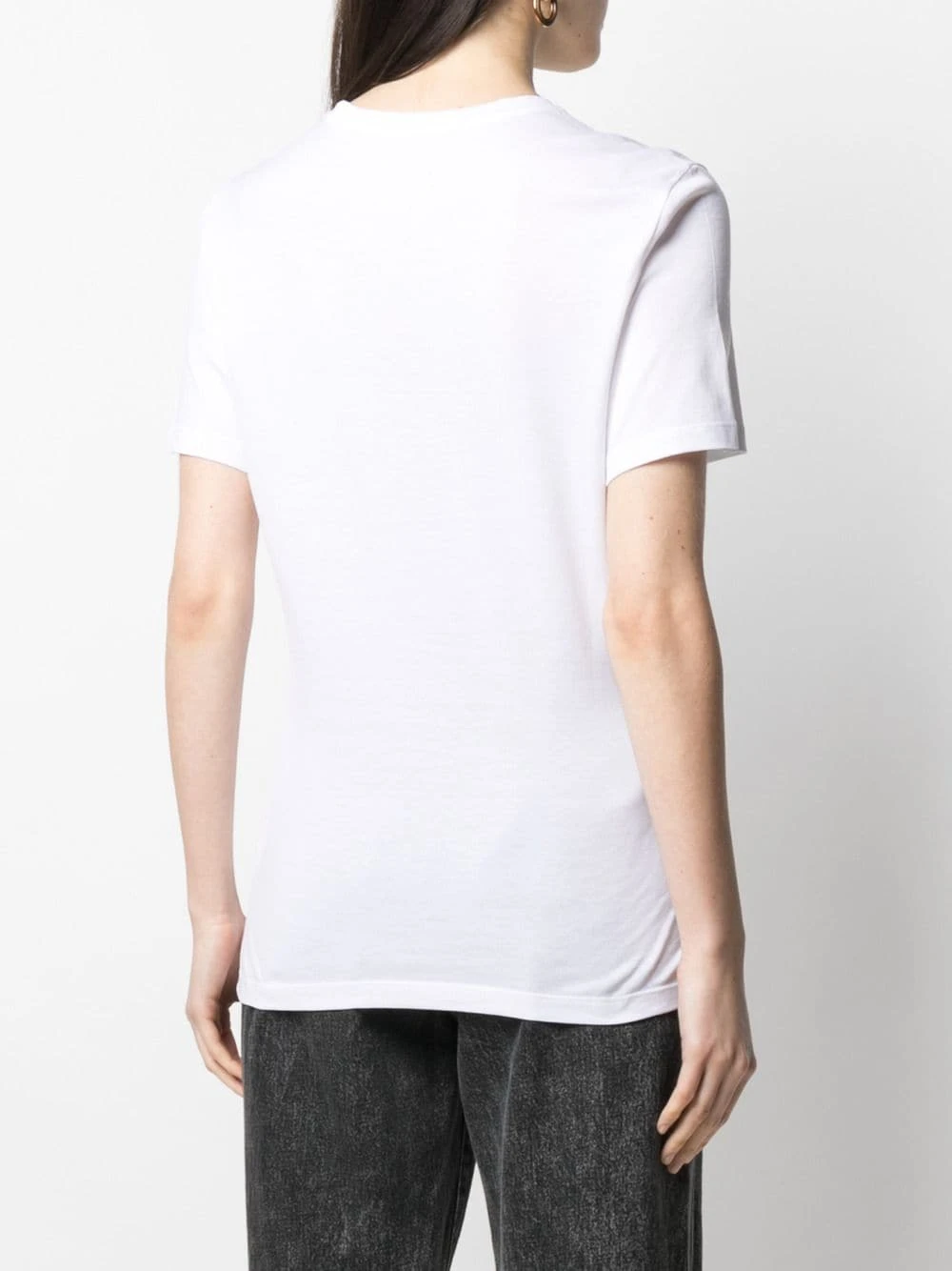 Logo imprimé sur le devant, encolure ras du cou, manches courtes, ourlet droit. Couleur : blanc. Matière : coton.