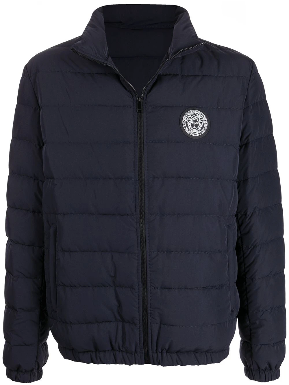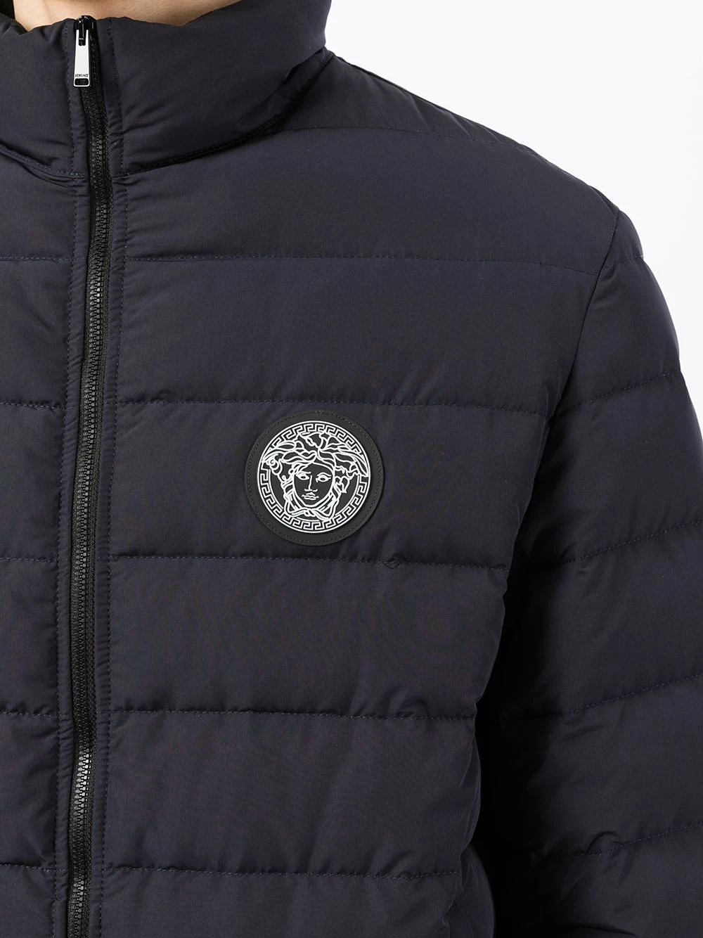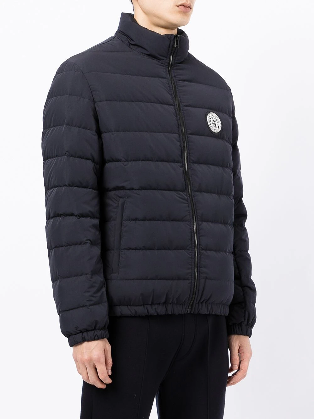 Design matelassé, motif Medusa, col montant, fermeture zippée devant, deux poches latérales zippées, manches longues, poignets élastiqués, ourlet élastiqué.