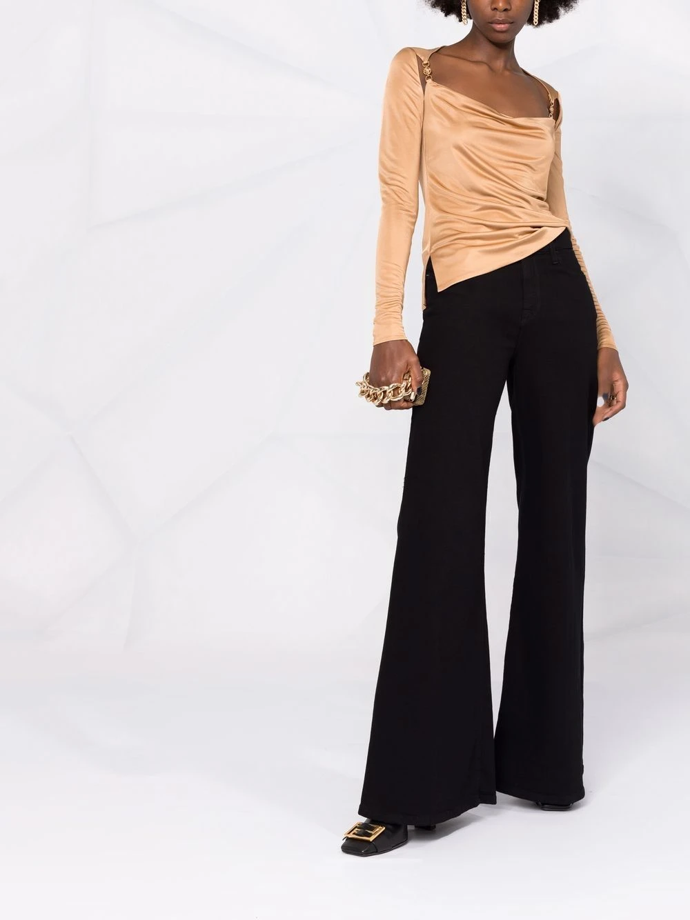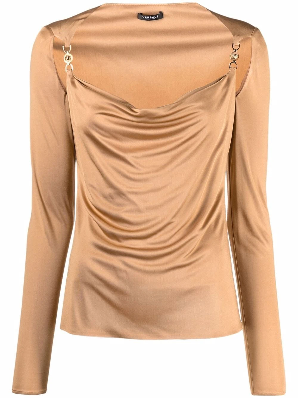 Détails drapés, détail Medusa, encolure arrondie, manches longues.