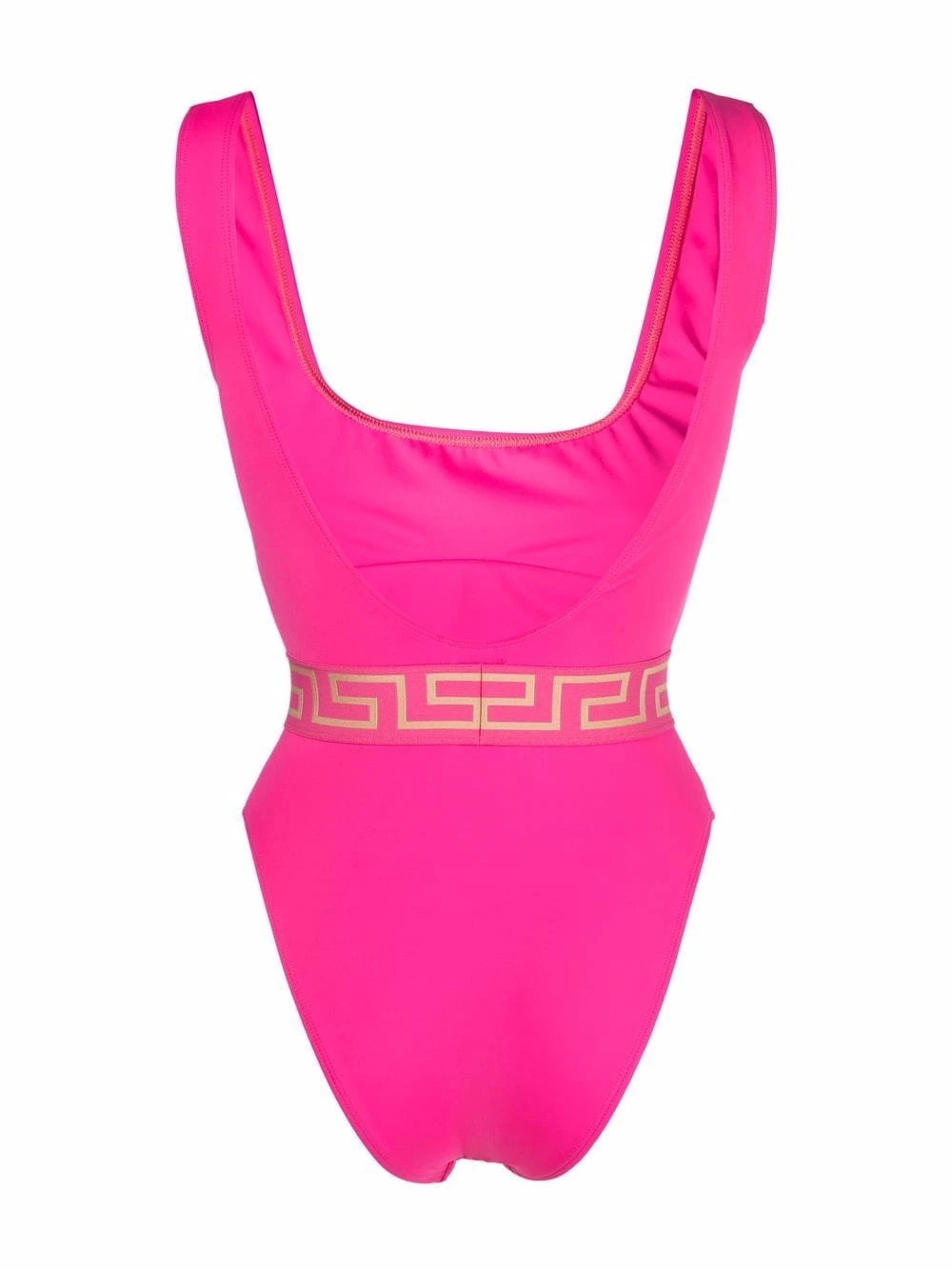Modèle bicolore, motif Greca signature imprimé, motif Medusa, encolure arrondie, décolleté arrondi dans le dos, design à enfiler. Veillez à essayer les maillot de bain par-dessus vos propres sous-vêtements.