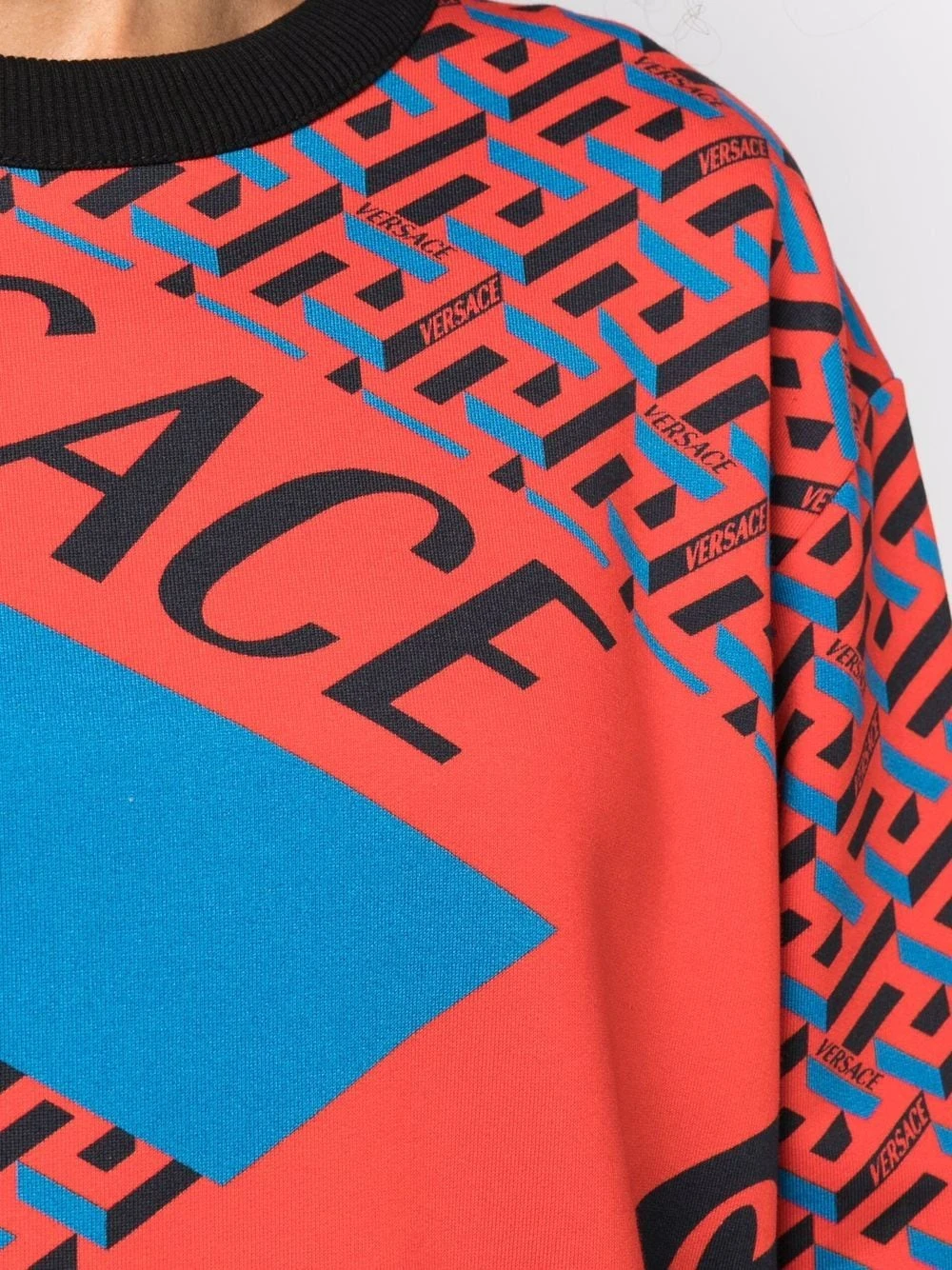 Logo imprimé à la poitrine, imprimé La Greca signature, bordures nervurées, encolure ras du cou, manches longues. Matière : coton.