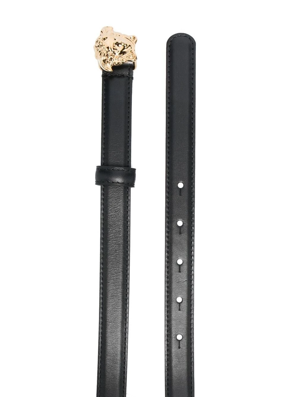 Détail Medusa, taille ajustable, passants de ceinture. Matière : cuir.
