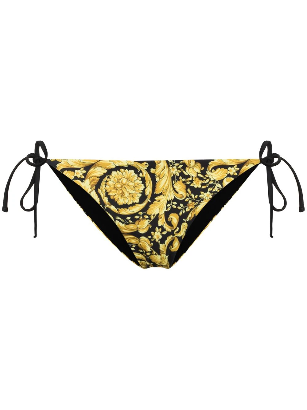Motif baroque, bonnets triangles, dos-nu, fermeture nouée au dos, fermeture à nouer sur les côtés. Veillez à essayer les maillot de bain par-dessus vos propres sous-vêtements.