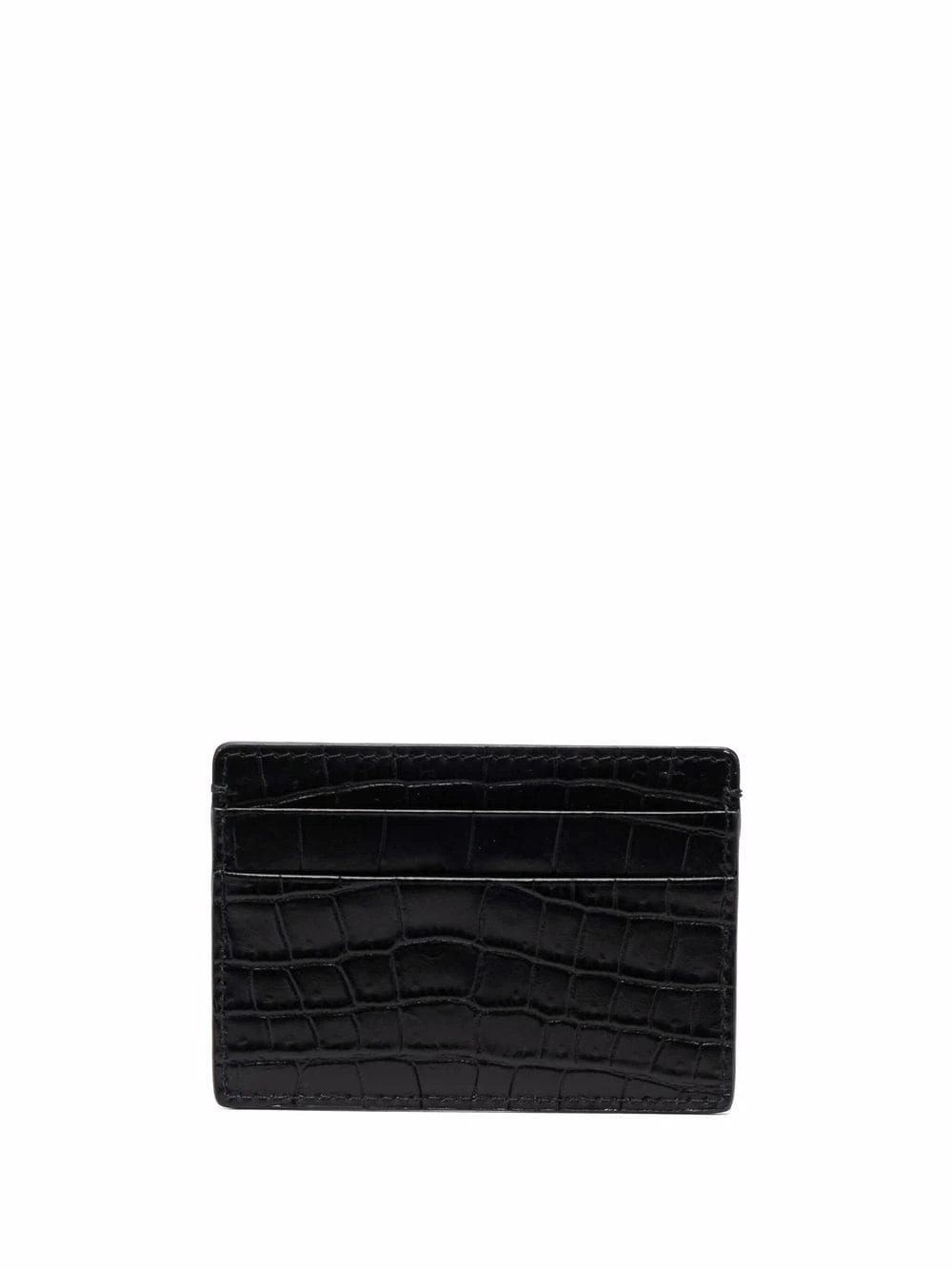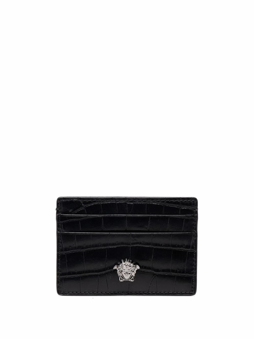 Effet peau de crocodile, détail Medusa, fentes pour carte. Couleur : noir. Matière : cuir.