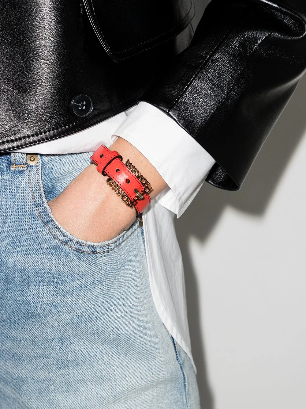 Finitions en métal doré, trous percés. Matière : cuir.