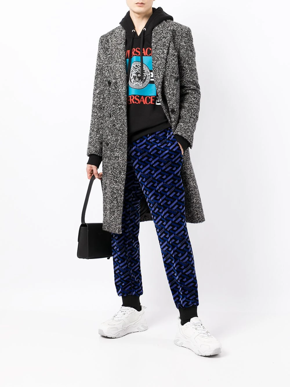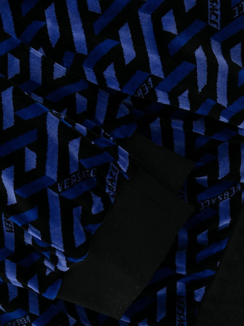Imprimé La Greca signature, texture chenille, ceinture élastique, coutures ton sur ton, poches plaquées latérales, poignets élastiqués. Matière : coton.