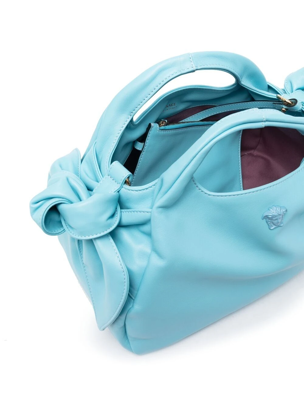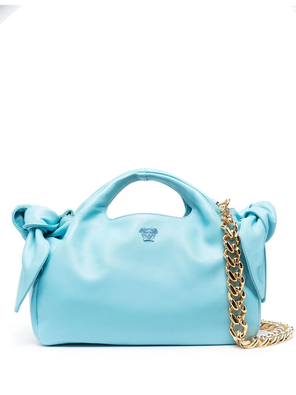 Détail Medusa, anses sur le dessus, détail de nœud, bride porté épaule en chaîne. Matière : cuir.