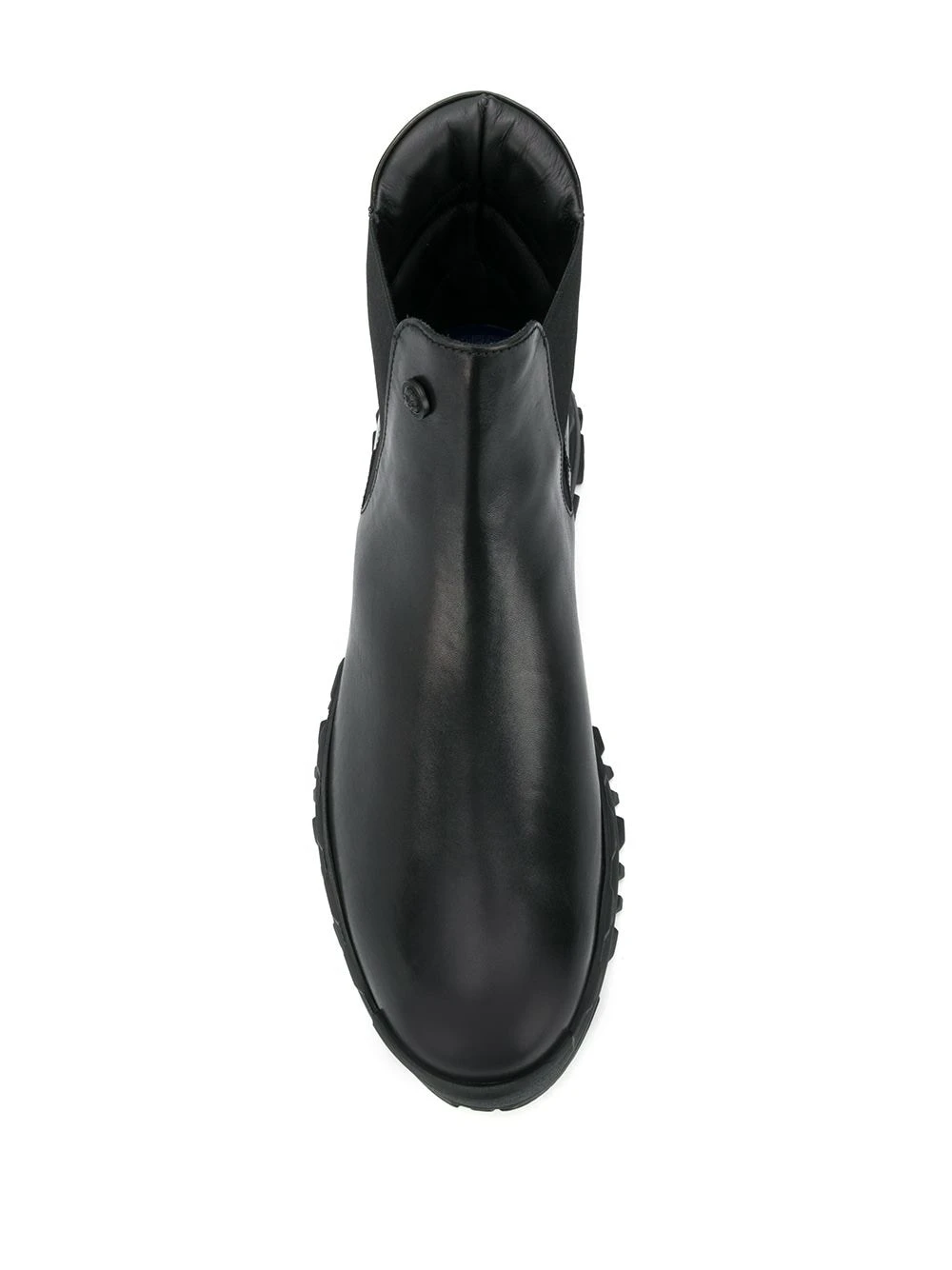 Design à enfiler, bout rond, semelle crantée en caoutchouc. Couleur : noir. Matière : cuir et tissu.