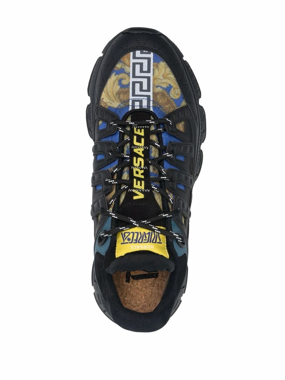 Design à empiècements, bout rond, imprimé Medusa Renaissance signature, fermeture à lacer sur le devant, languette à patch logo, logo imprimé sur le côté, semelle intérieure à logo, détail Greca embossé signature, logo imprimé sur le devant, semelle épaisse.