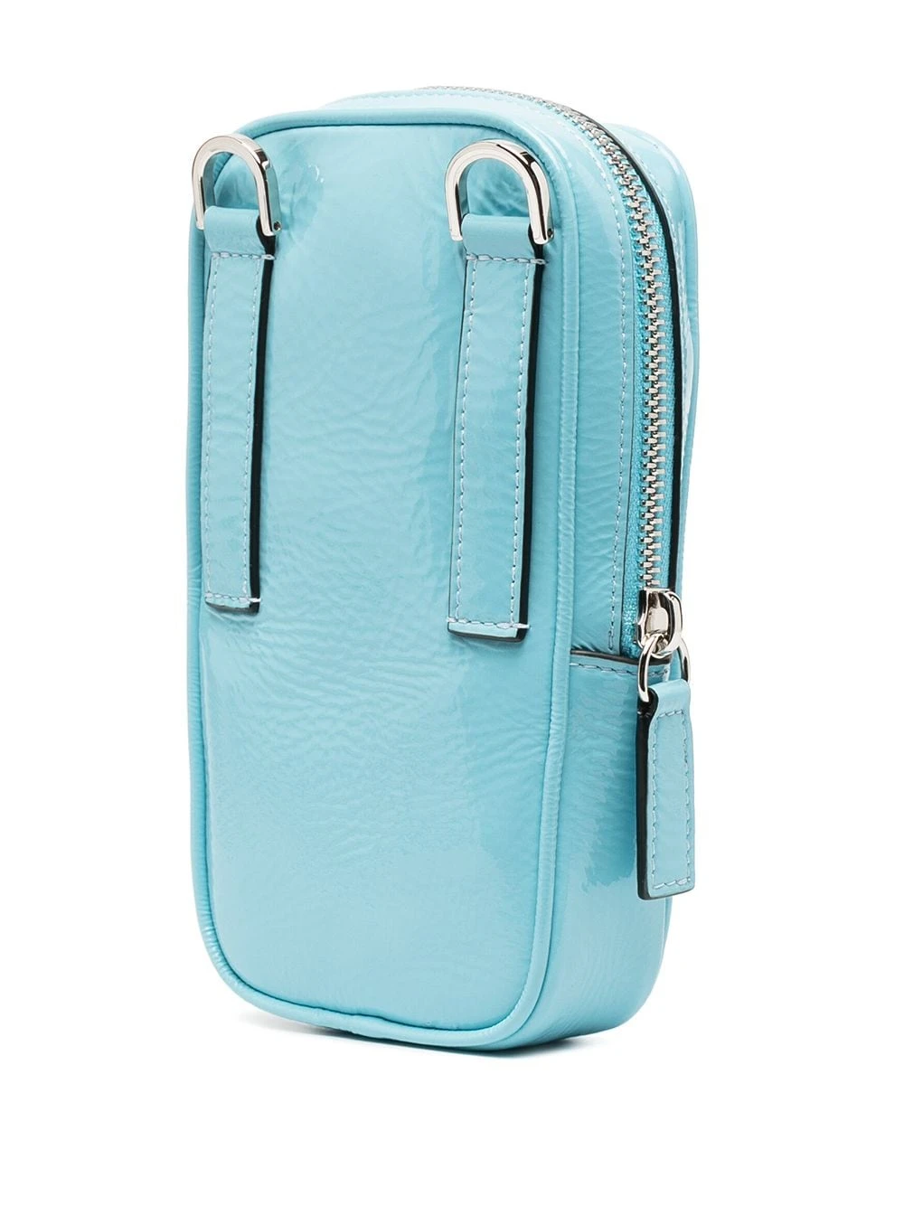 Plaque logo, fermeture zippée sur le dessus, poche plaquée sur le devant, compartiment principal, cordon ajustable. Couleur : bleu. Matière : cuir.
