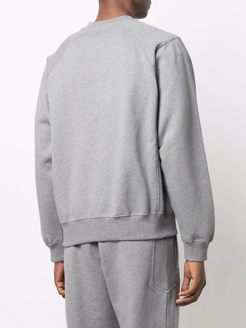 Logo brodé sur le devant, encolure ras du cou, manches longues, bordures nervurées. Couleur : gris. Matière : coton.