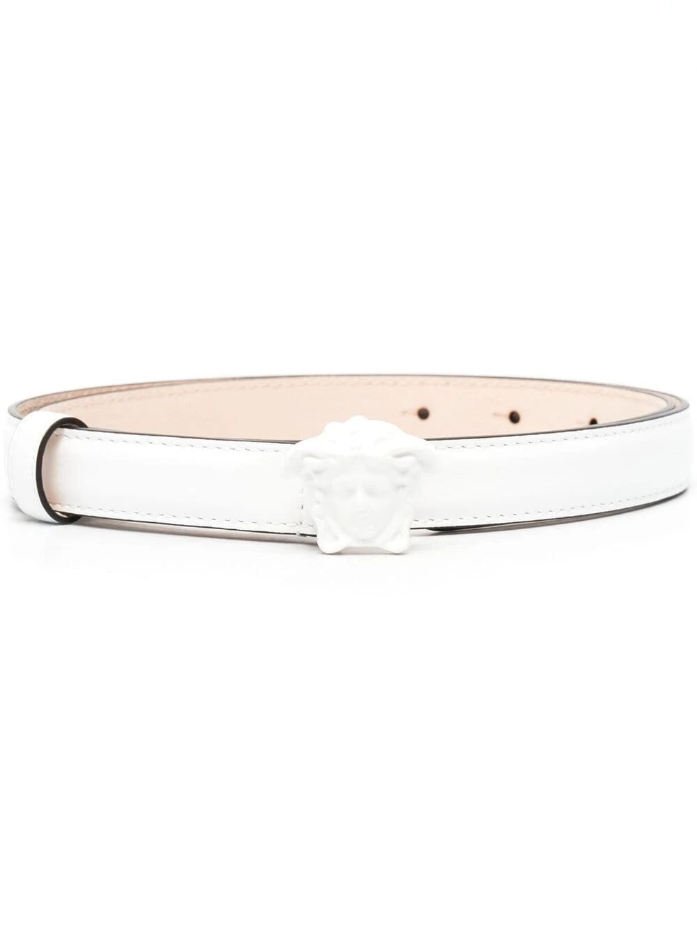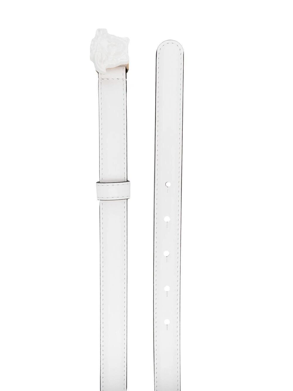 Motif Medusa, passants de ceinture, taille ajustable. Couleur : blanc. Matière : cuir.