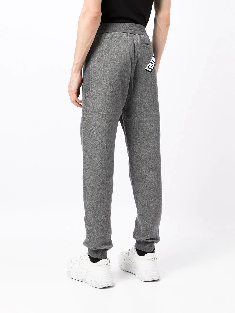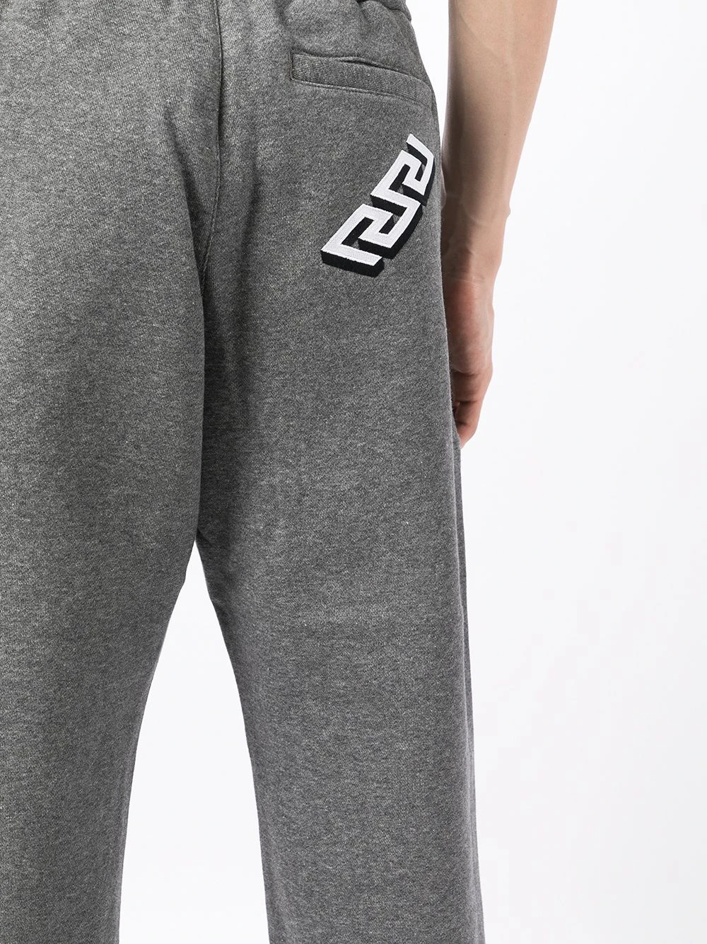 Ceinture à logo, tricot point jersey, coutures ton sur ton, poches plaquées latérales, poche arrière passepoilée, imprimé La Greca signature, poignets élastiqués. Couleur : gris. Matière : coton.