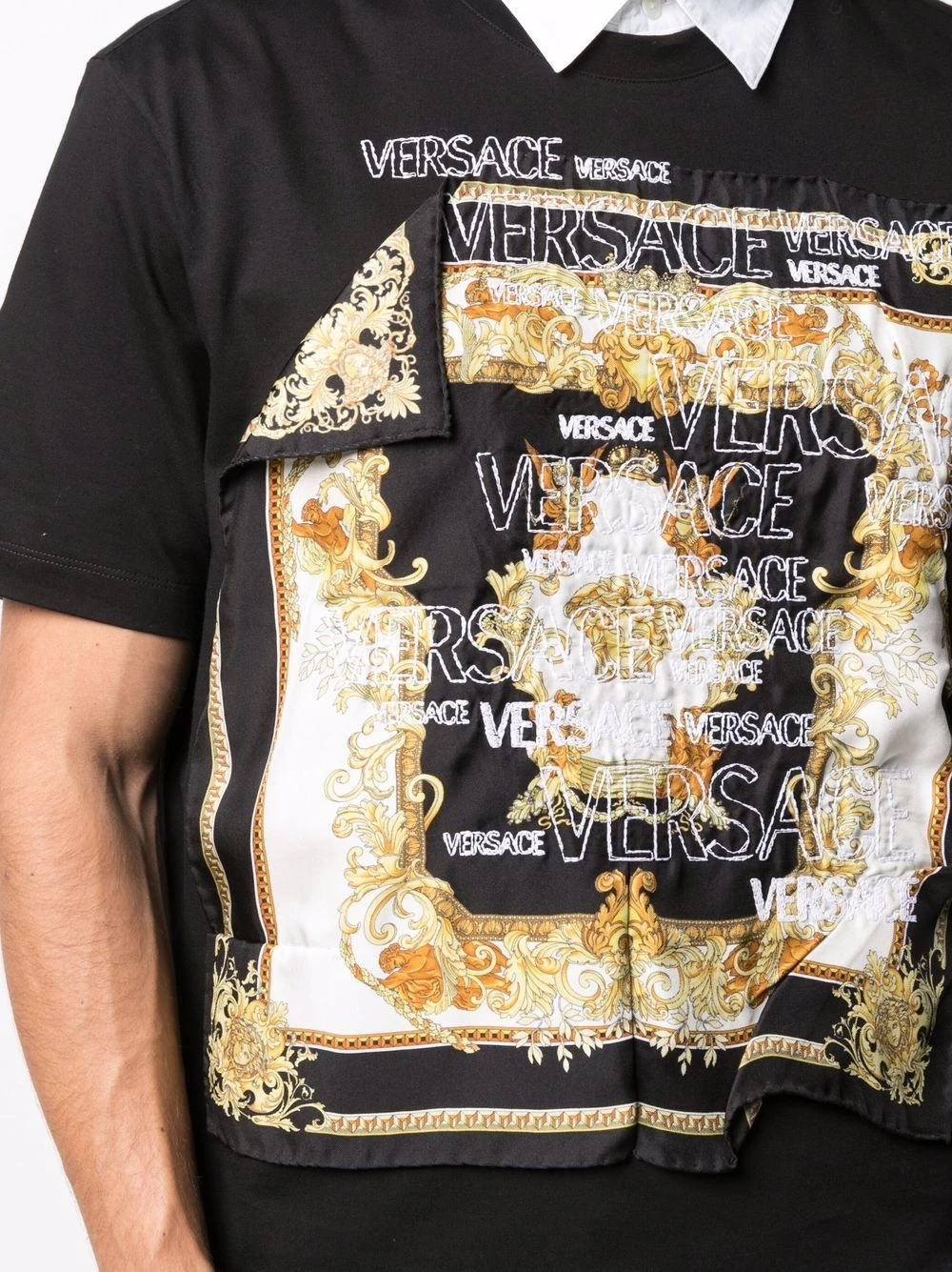 Motif baroque, logo brodé sur le devant, encolure ras du cou, manches courtes.