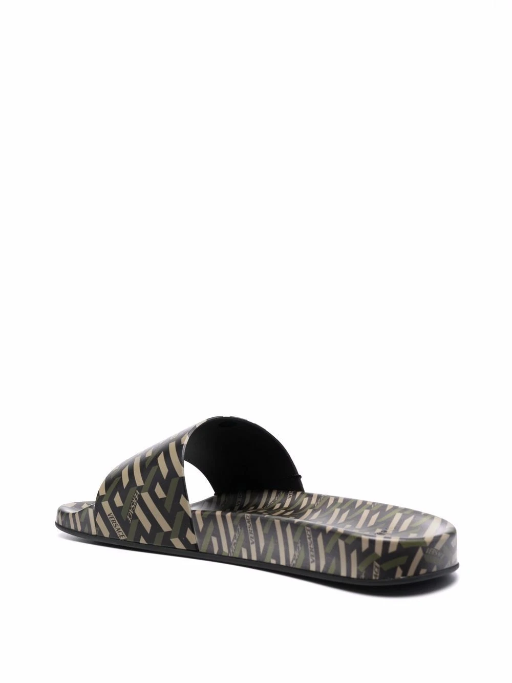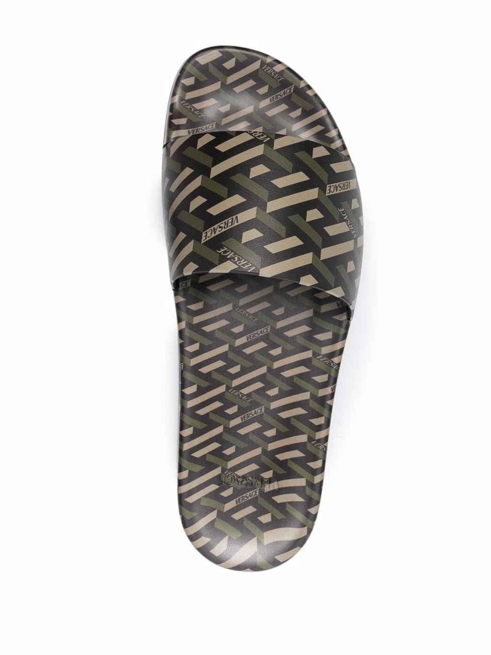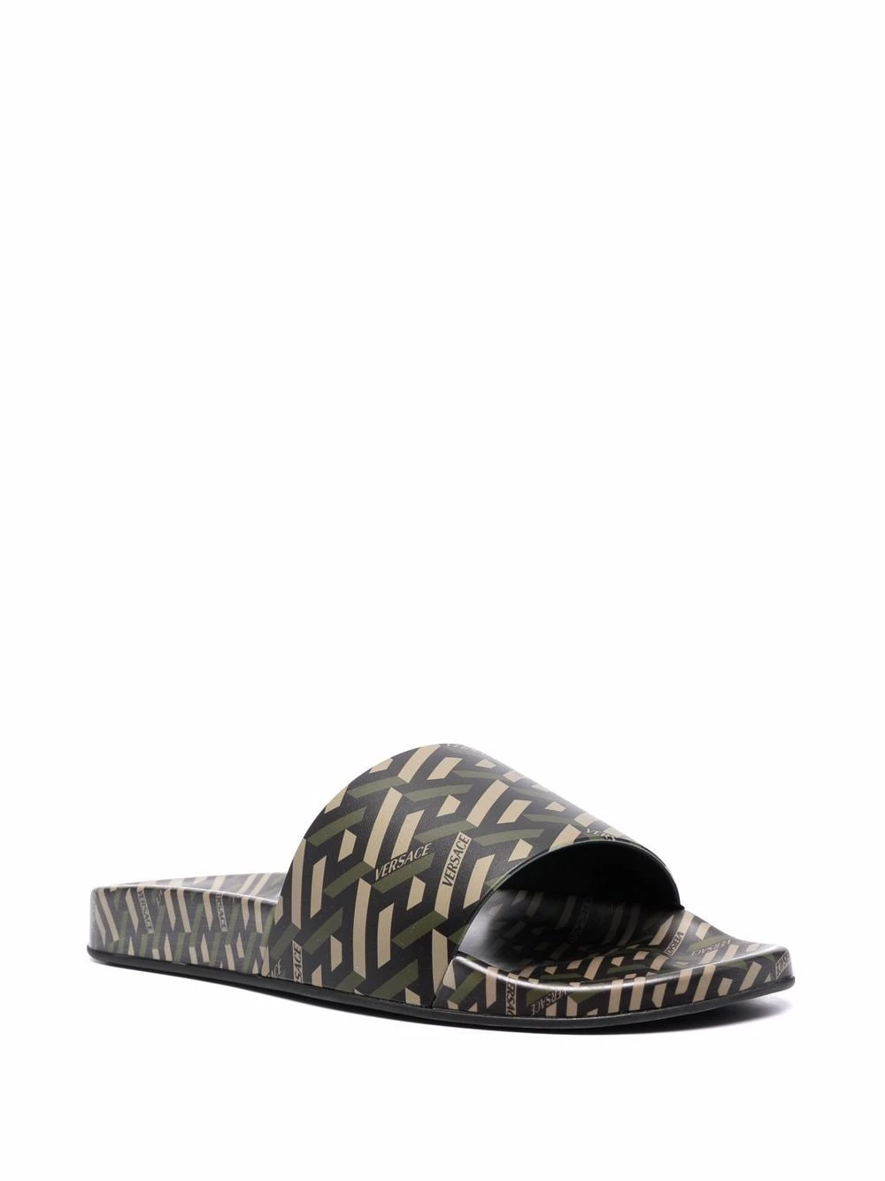 Imprimé monogrammé, motif géométrique, bout ouvert, semelle intérieure à logo, semelle en caoutchouc. Couleur : vert.