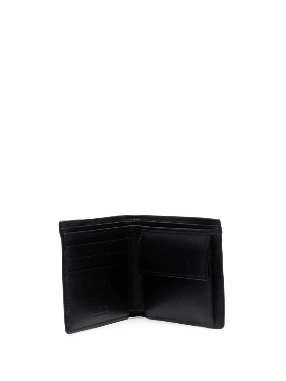 Logo embossé sur le devant, compartiments intérieurs pour carte, poche à rabat interne . Couleur : noir. Matière : cuir de veau.