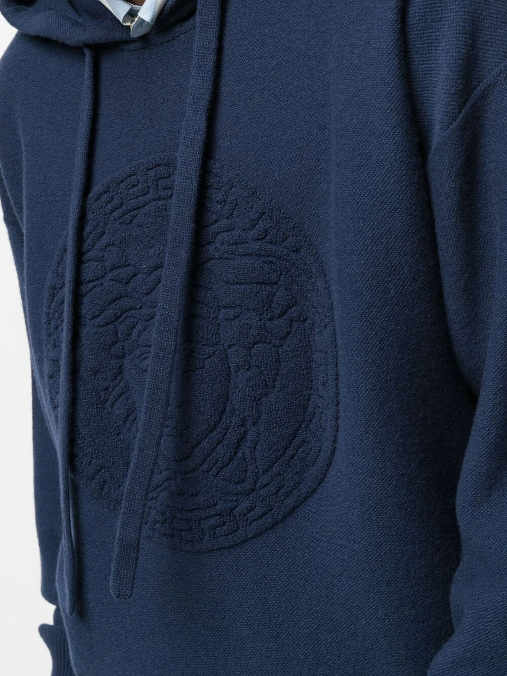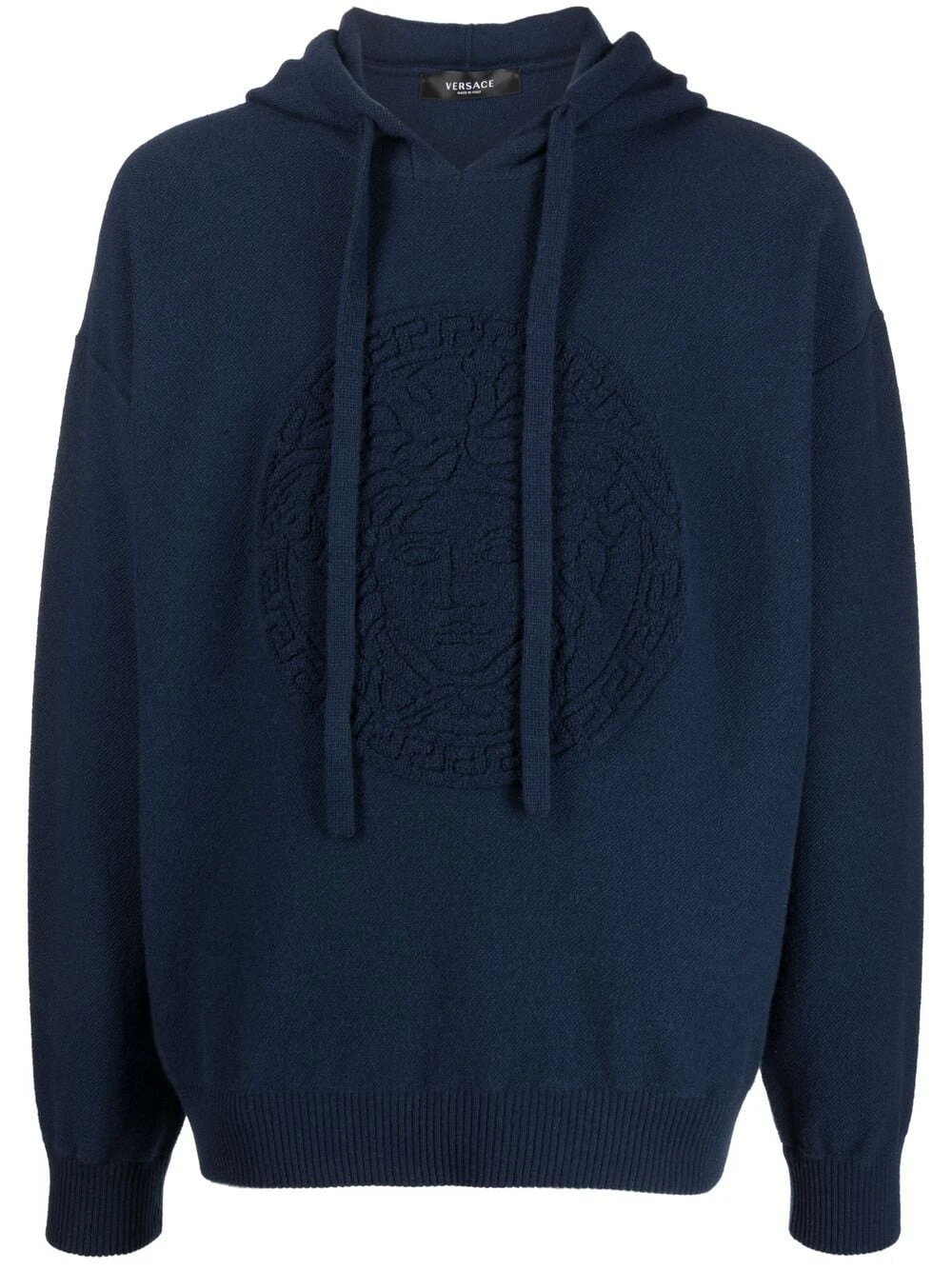 Design tricoté, motif Medusa, capuche à lien de resserrage, manches longues, poignets nervurés, ourlet nervuré.