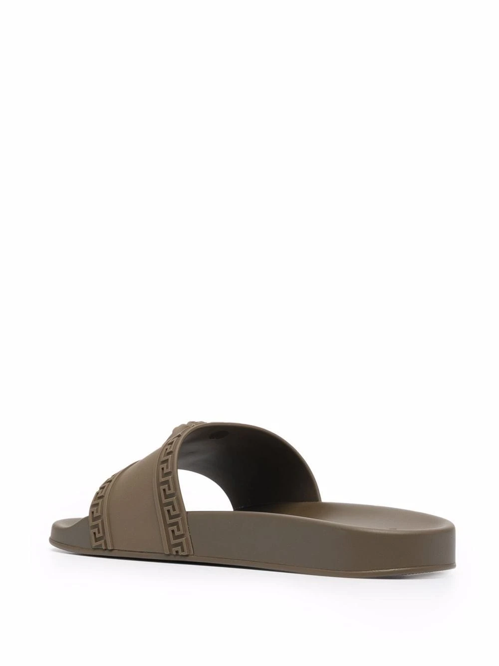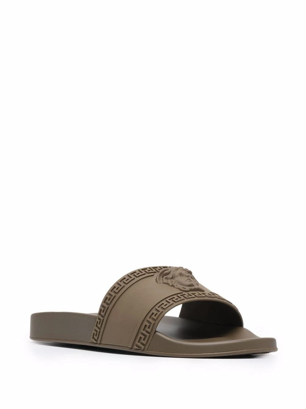 Design ton sur ton, détail Medusa, détail Greca signature, bout ouvert, design à enfiler, semelle plate en caoutchouc. Matière : Matériaux Naturels (autre)->Caoutchouc.