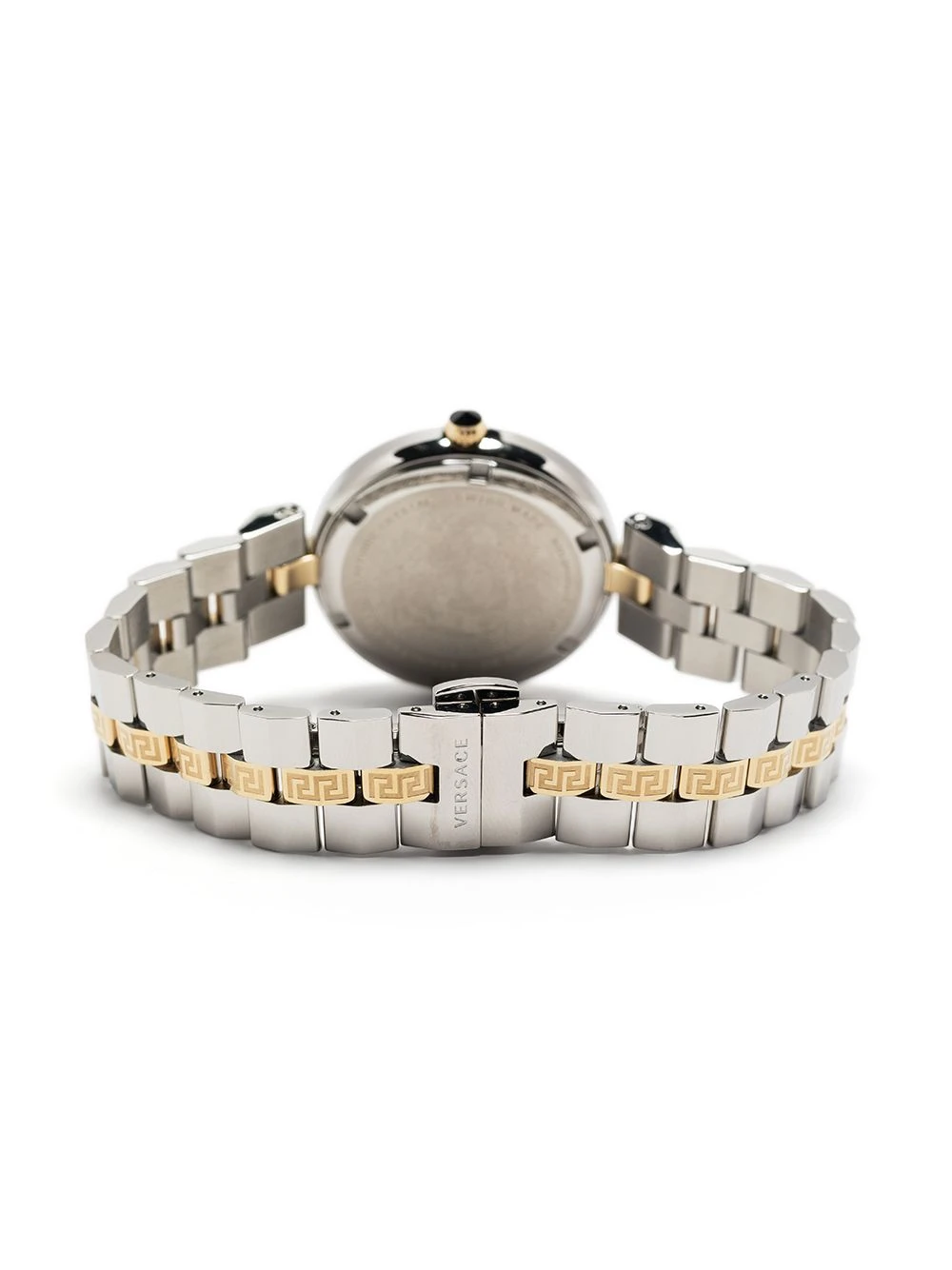 Boîtier rond, mouvement à quartz, bracelet à maillons ajustable, fermeture à loquet, aiguilles index, couronne vissée. Cet article bénéficie de deux ans de garantie standard proposés par la marque.