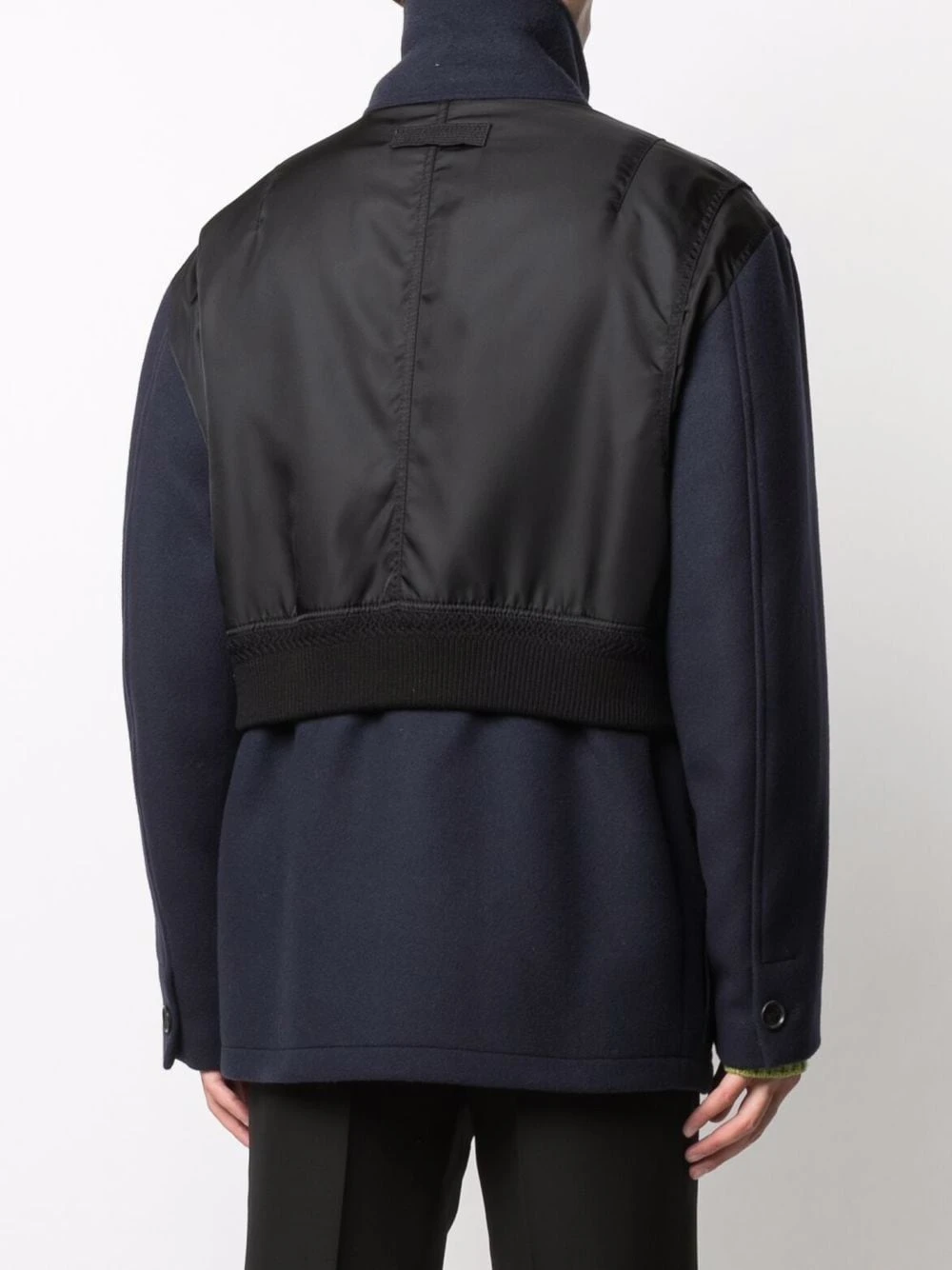 Poches devant à rabat, design à empiècements, fermeture zippée devant, manches longues, ourlet droit.