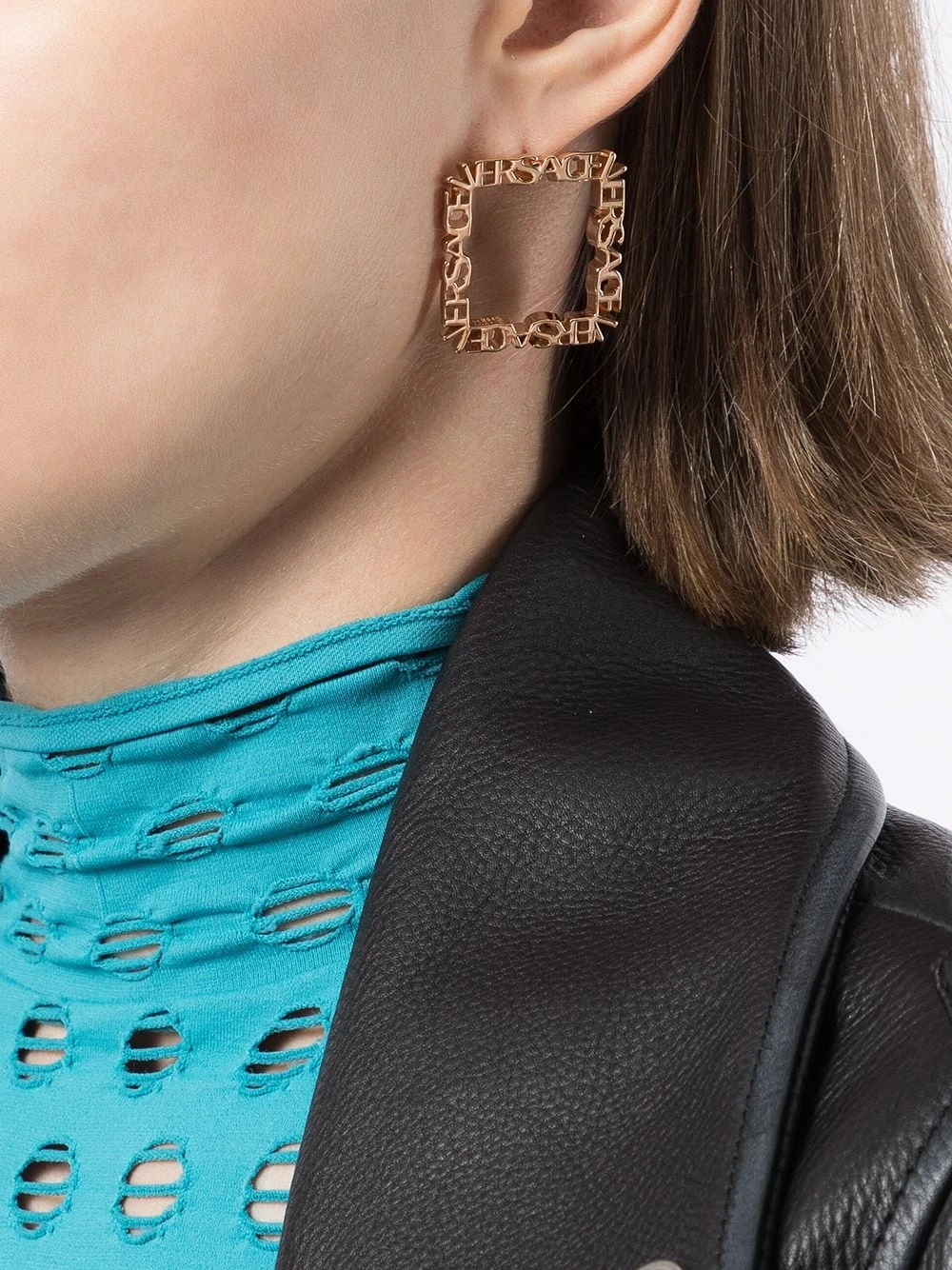 Doré, logo lettre, forme carrée. Ces boucles d’oreilles sont vendues par paire.