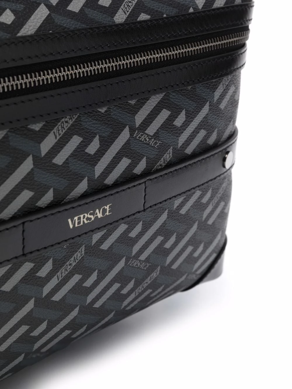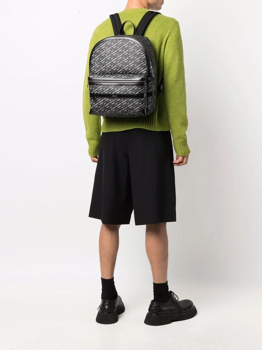 Imprimé monogrammé, ornements argentés, patch logo intérieur, compartiment principal, poche intérieure plaquée, compartiment zippé sur le devant, fermeture zippée sur le dessus, anse classique, brides porté épaule ajustables. Matière : cuir de veau.
