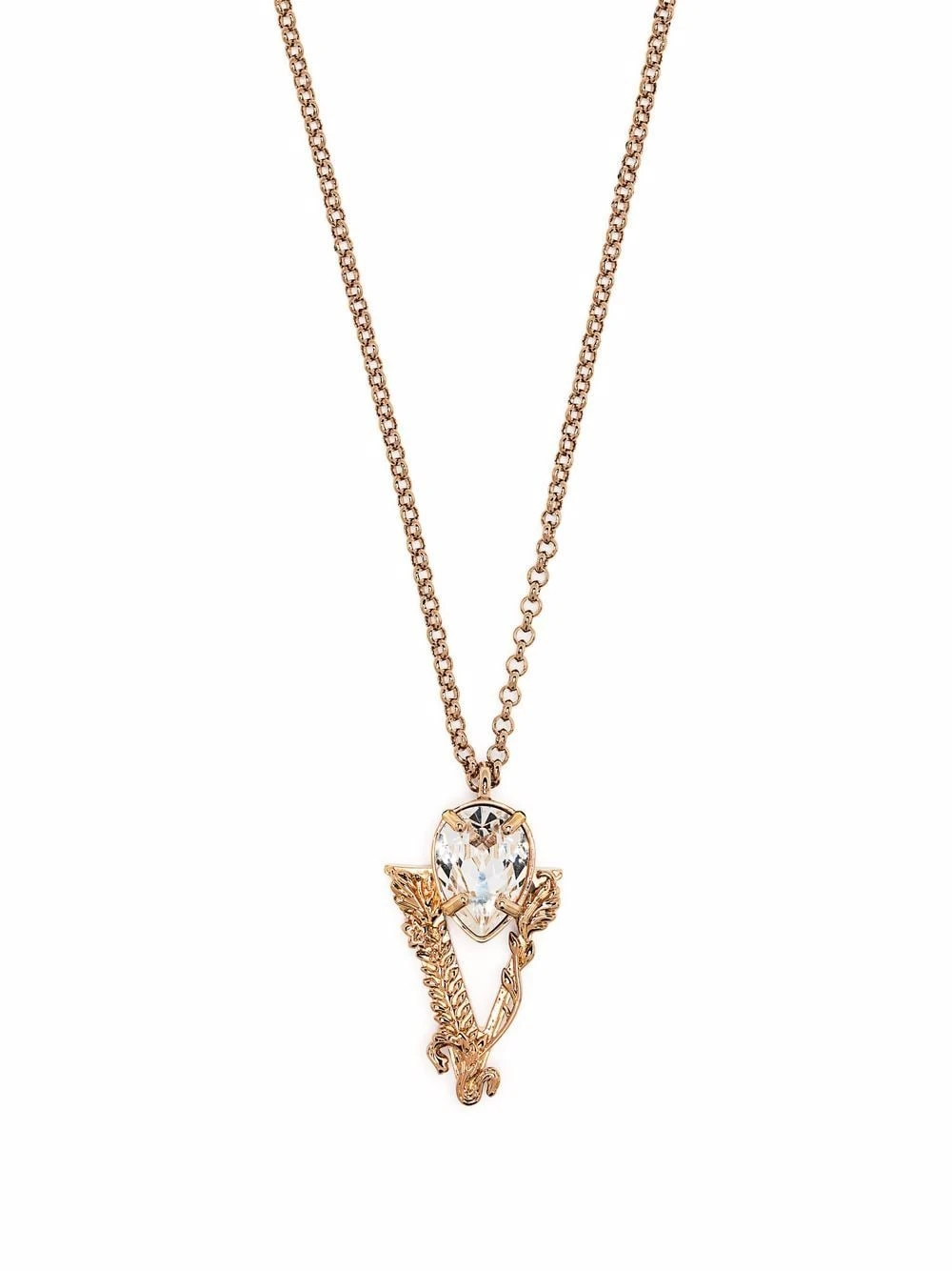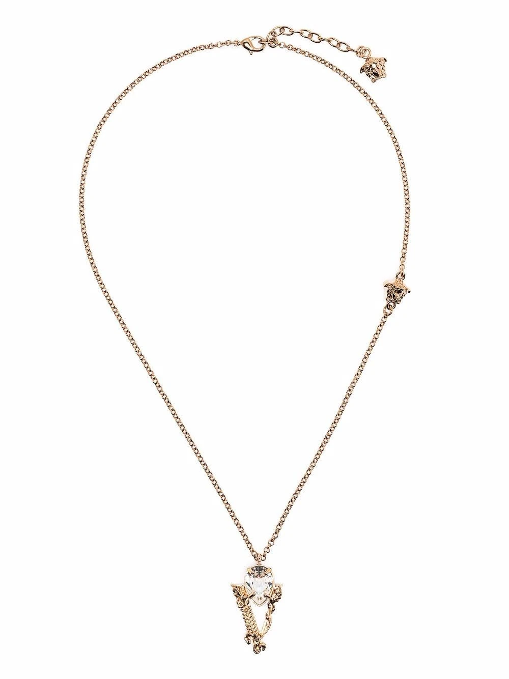Imprimé Barocco signature, ornement en cristal, maille jaseron, fermoir mousqueton, taille ajustable. Matière : laiton.