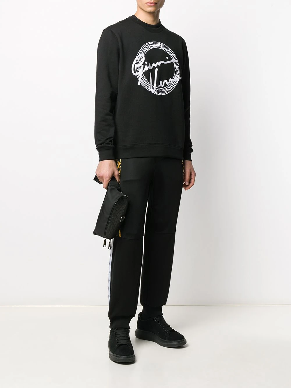 Pantalon de jogging à logo baroque en coton Versace avec ceinture élastique, coupe fuselée et coupe stretch. Couleur : noir.