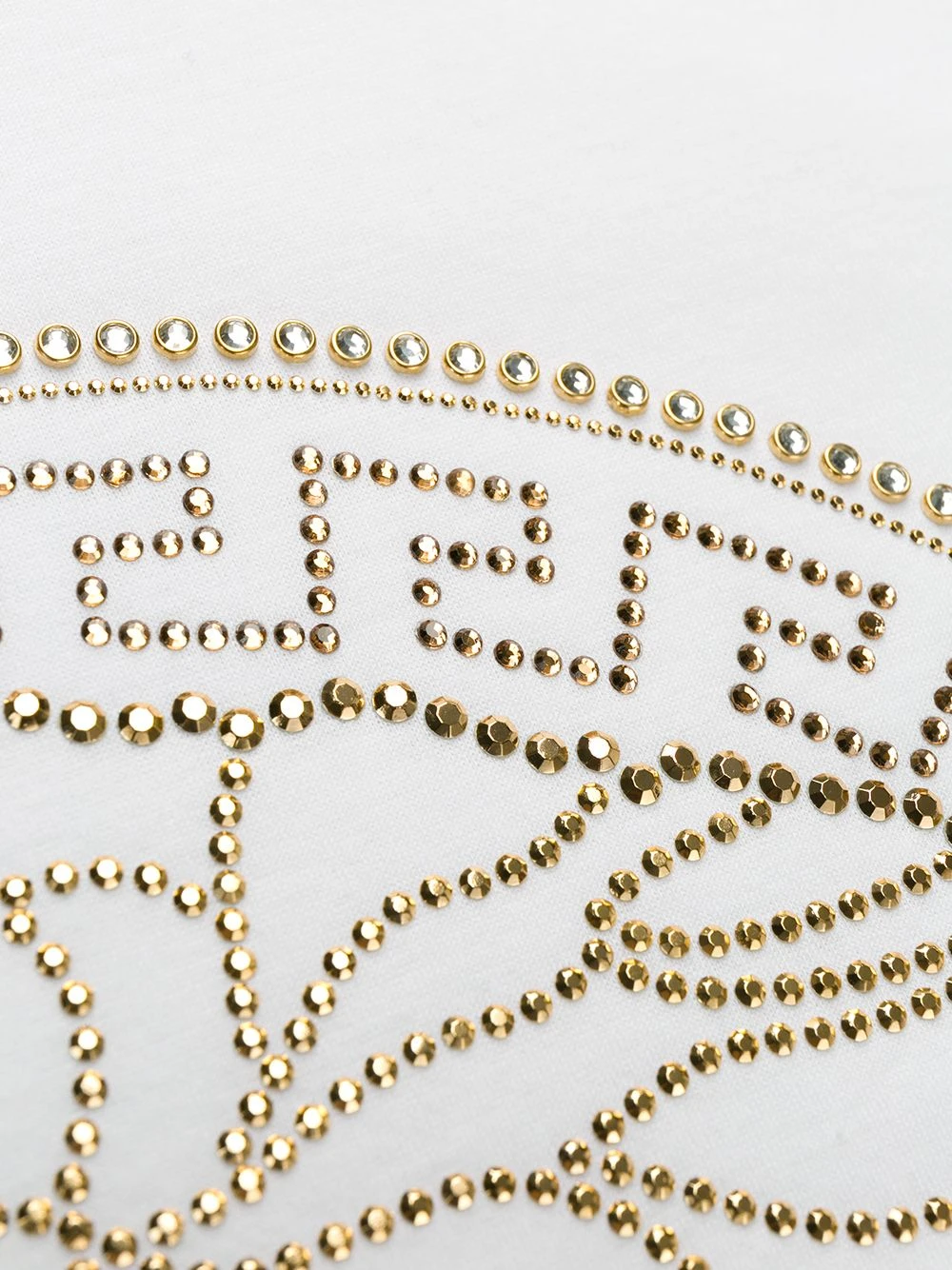 T-shirt à motif Medusa en coton Versace avec encolure ronde et manches courtes. Couleur : blanc.