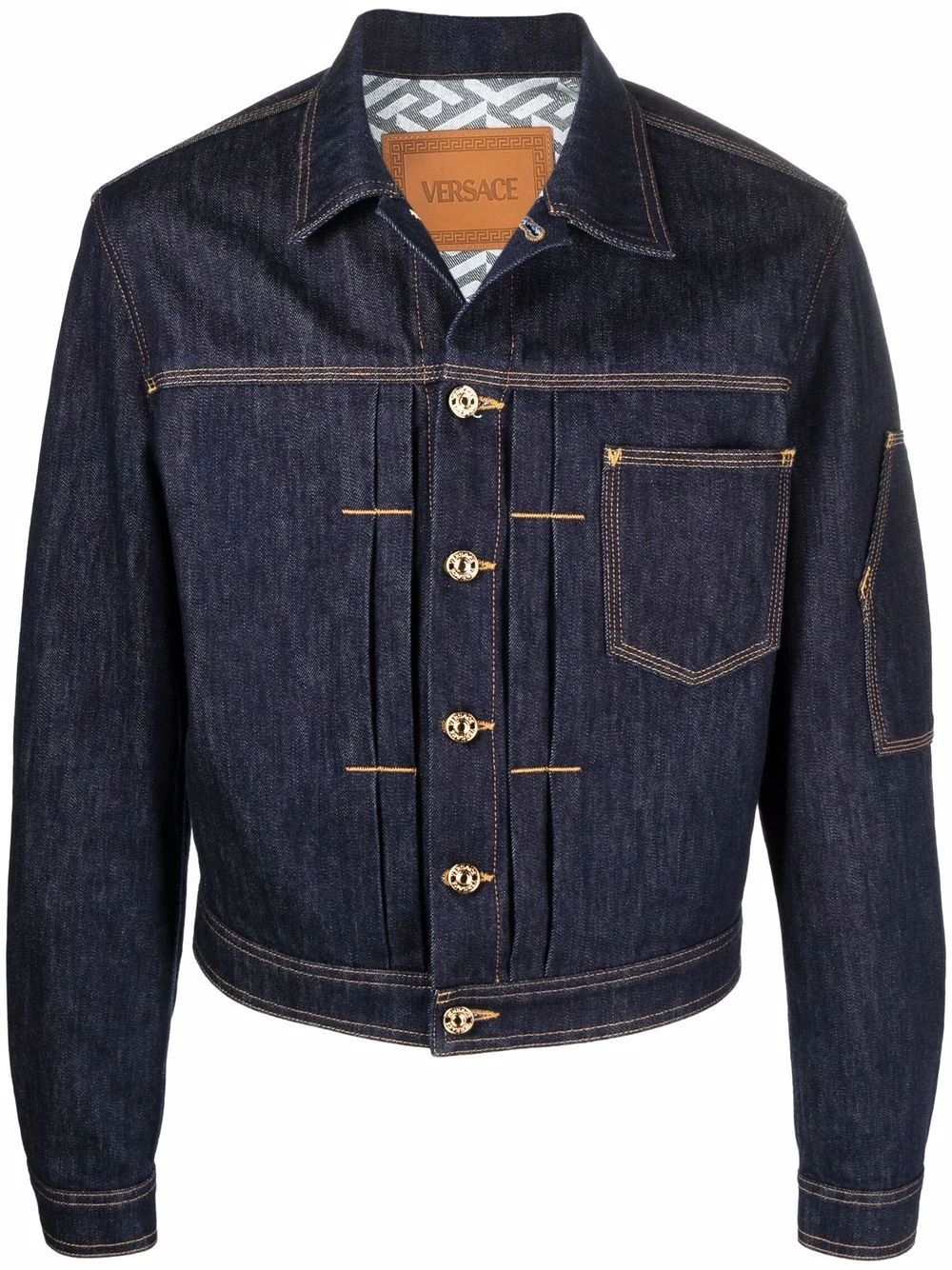 Qualité garantie 100% Versace Veste en jean à coutures contrastantes vestes en jean homme