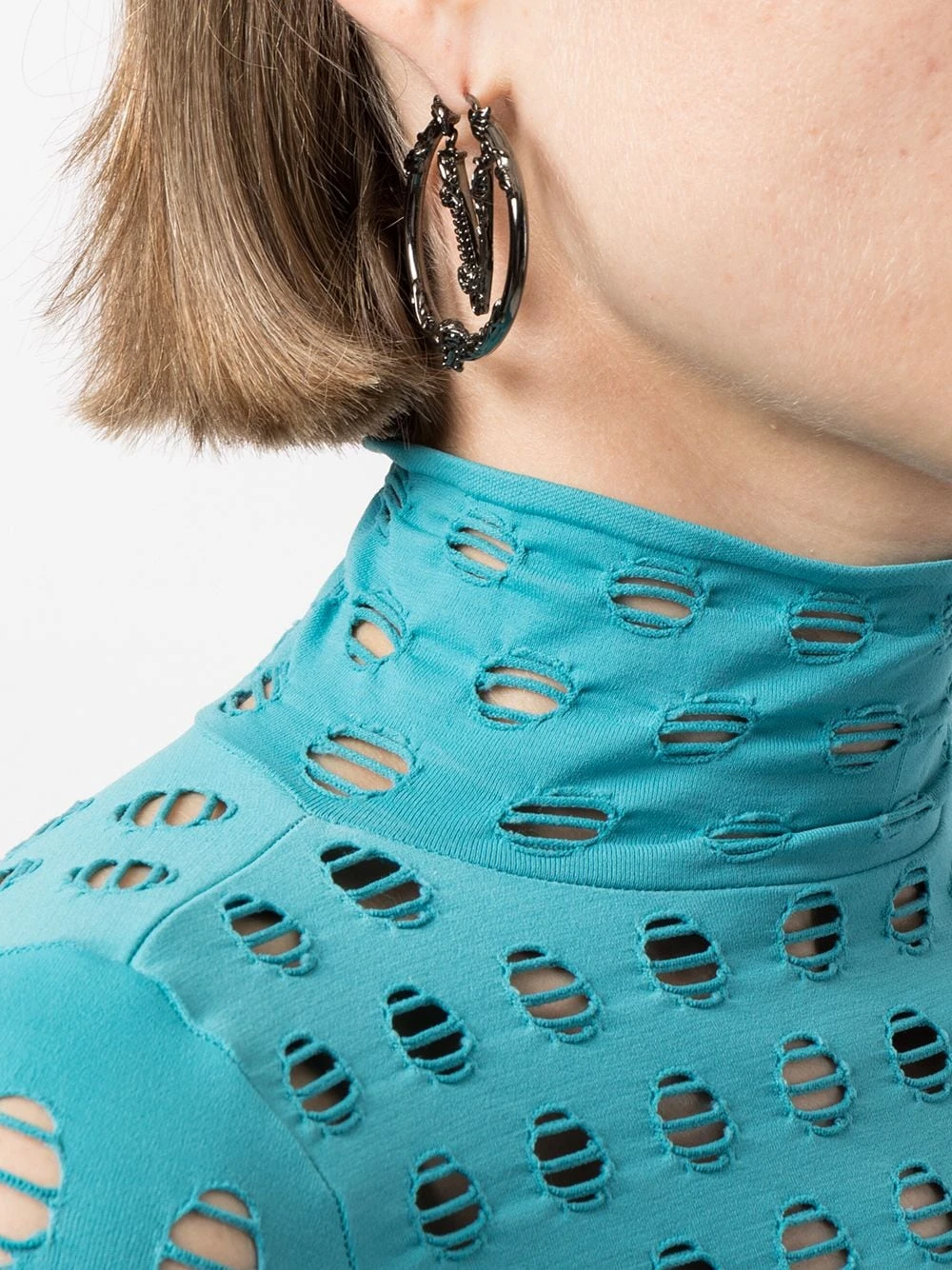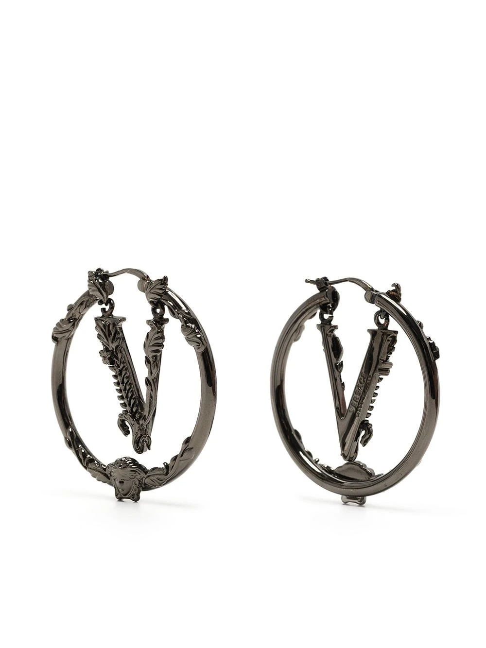 Fermoir épingle pivotant, détail de logo Virtus signature, anneau d’épaisseur moyenne, pour oreilles percées. Matière : argent. Ces boucles d’oreilles sont vendues par paire.
