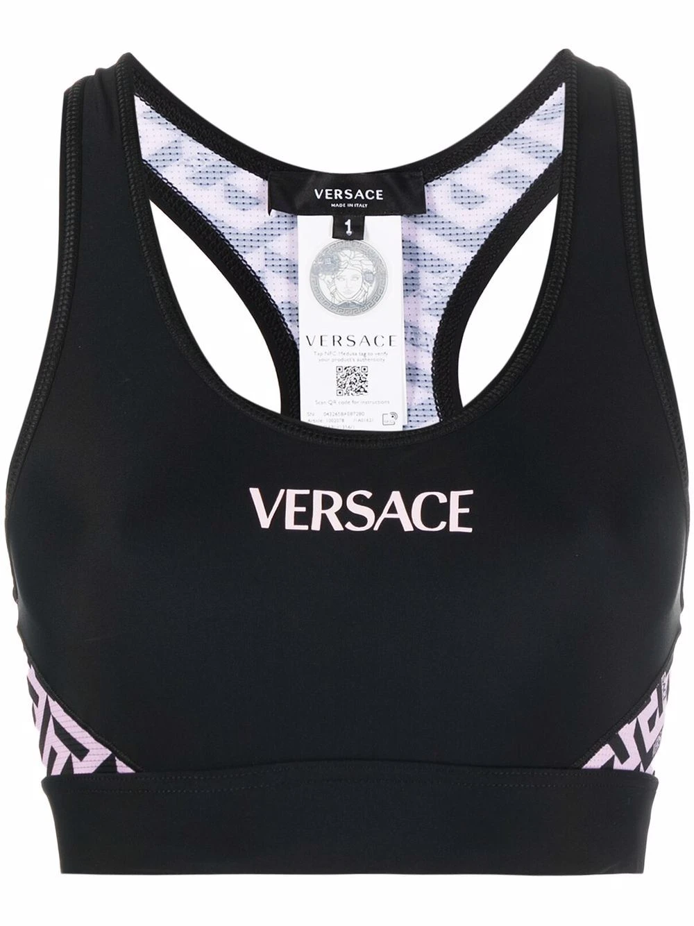 Imprimé La Greca signature, logo imprimé sur le devant, encolure arrondie, dos nageur, construction stretch. N’oubliez pas : cet article doit être essayé par-dessus vos propres vêtements.