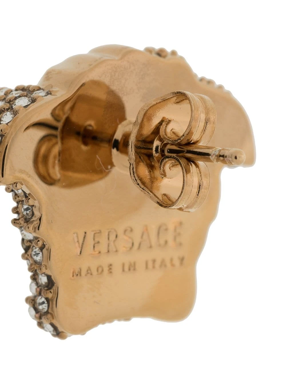 Fermoir papillon, ornement en cristal, motif Medusa. Couleur : doré. Matière : métal. Les deux font la paire ! Ces boucles d’oreilles sont vendues par paire.