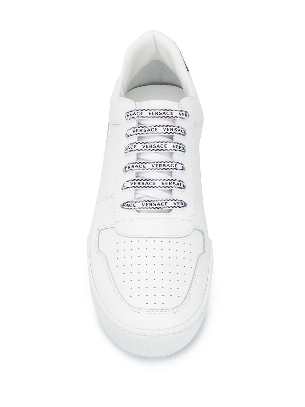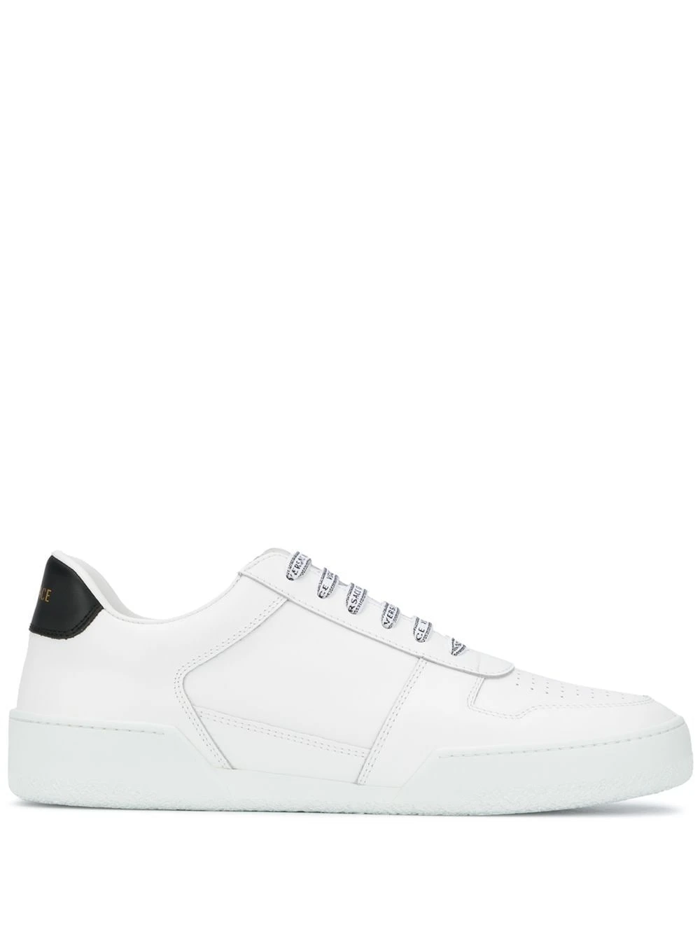 Semelle en caoutchouc, bout en amande, fermeture à lacer sur le devant, contrefort contrastant. Couleur : blanc. Matière : cuir.
