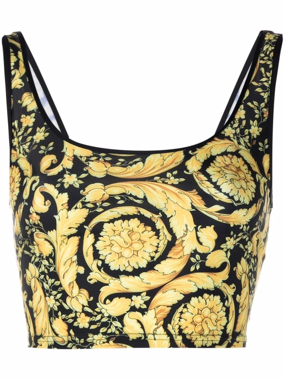 Motif baroque, encolure arrondie, décolleté arrondi dans le dos, coupe courte. Couleur : noir. Veillez à essayer les maillot de bain par-dessus vos propres sous-vêtements.