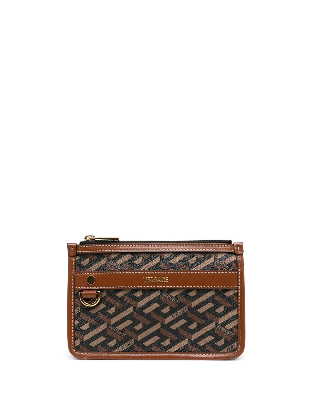 Imprimé La Greca signature, logo imprimé sur le devant, fermeture zippée sur le dessus, patch logo intérieur, finitions en métal doré. MatiÚre : cuir.