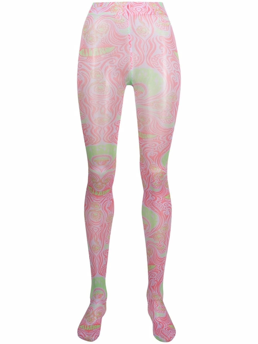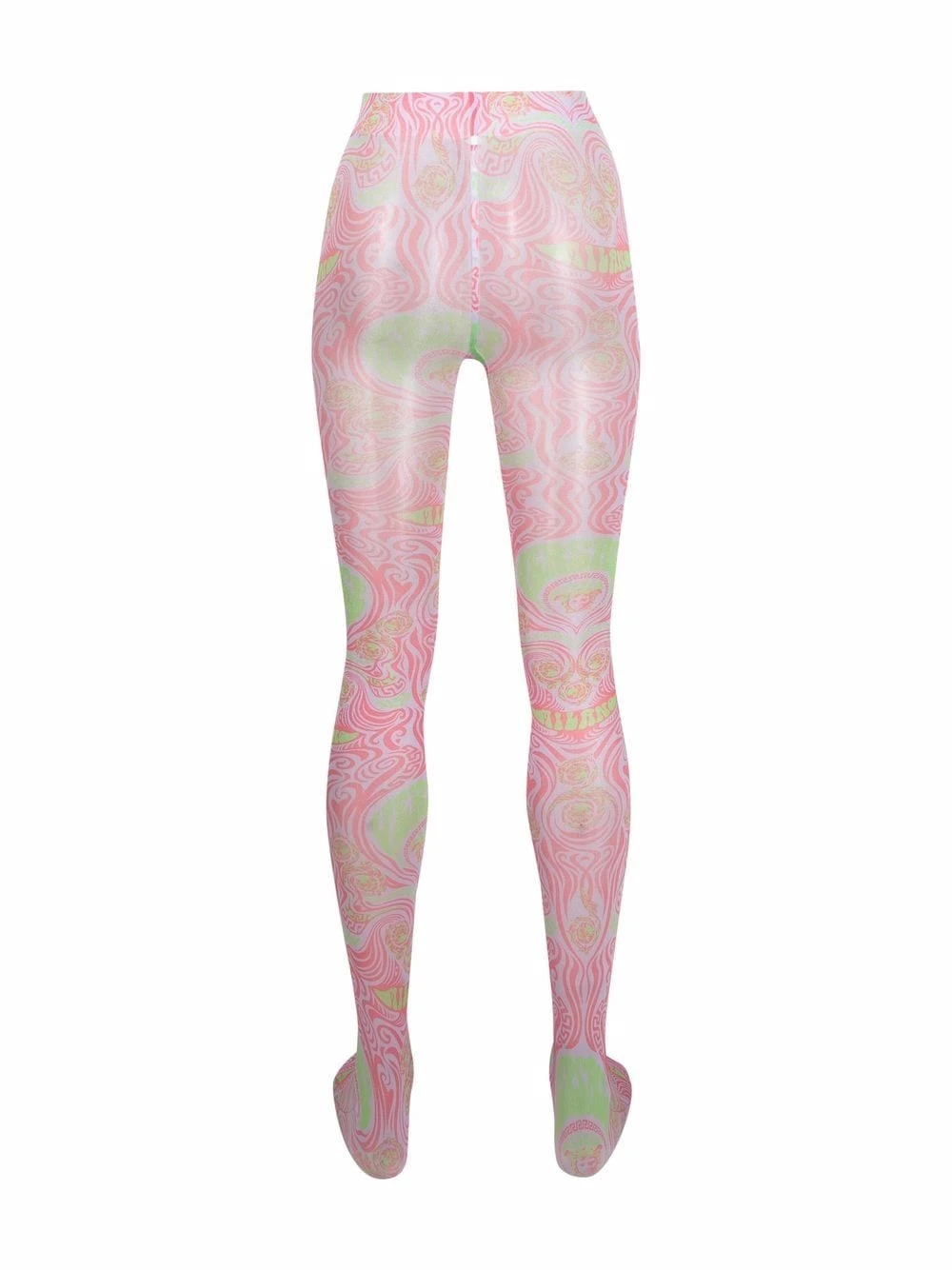 Construction stretch, jacquard à motifs, détail Greca signature, imprimé tie dye, taille haute, coupe skinny.