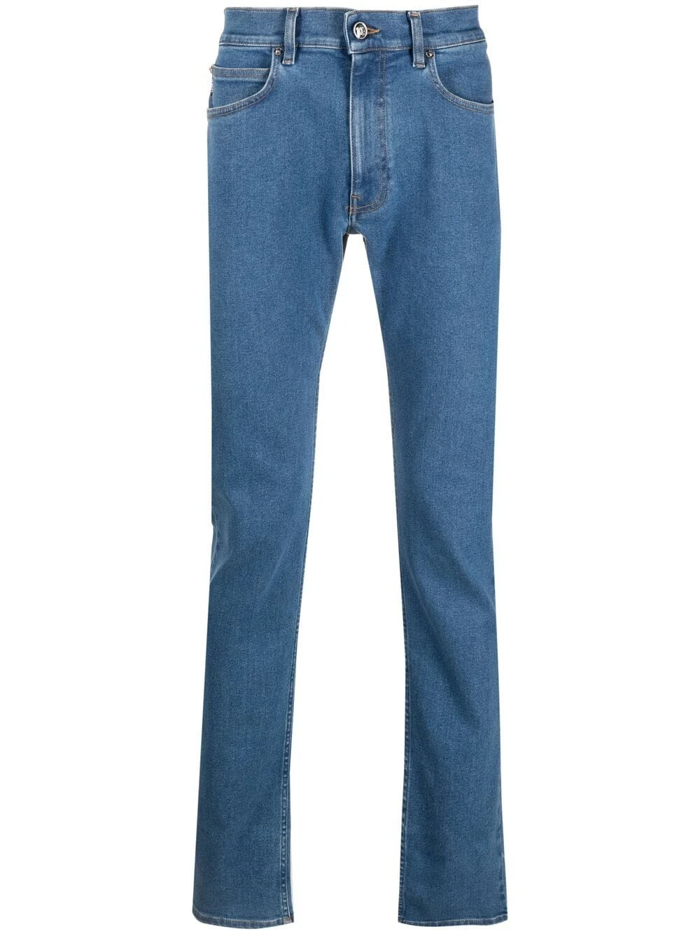 Effet légèrement délavé, coupe droite, patch logo embossé sur l’arrière, logo brodé à l’arrière, fermeture à zip et boutons sur le devant, passants de ceinture, 5 poches classiques. Couleur : bleu.