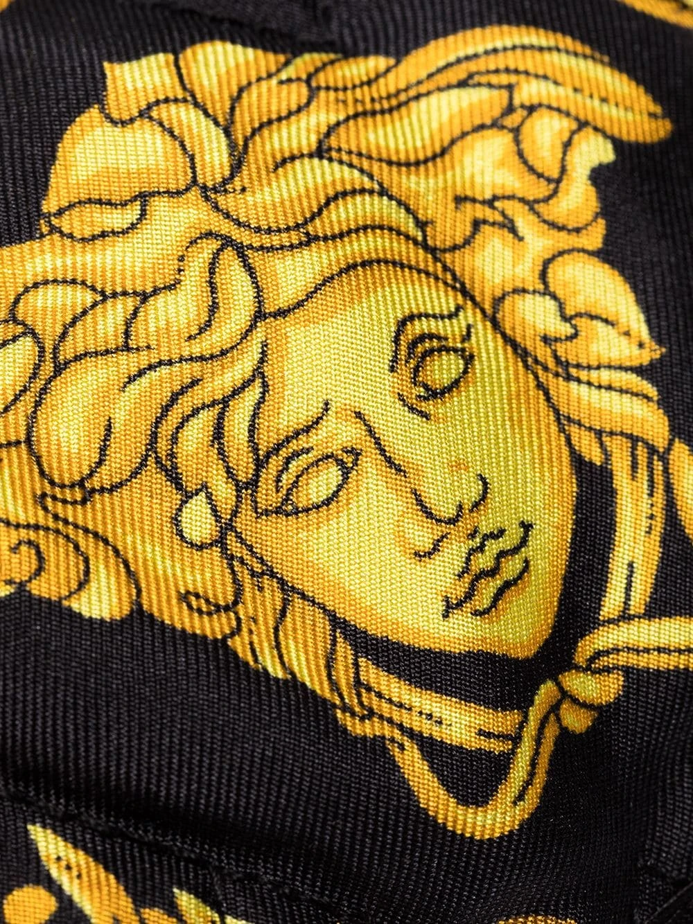 Bande élastiquée, motif Medusa, effet matelassé. Couleur : noir. Matière : soie.
