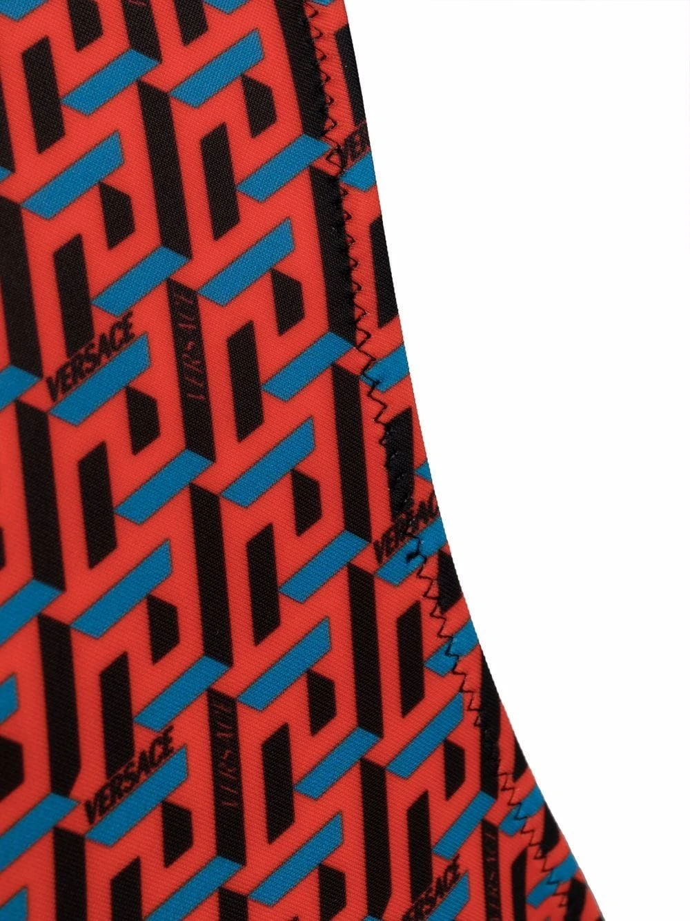 Orange, bleu, noir, motif Greca signature imprimé, construction stretch, taille basse. Veillez à essayer les maillot de bain par-dessus vos propres sous-vêtements.