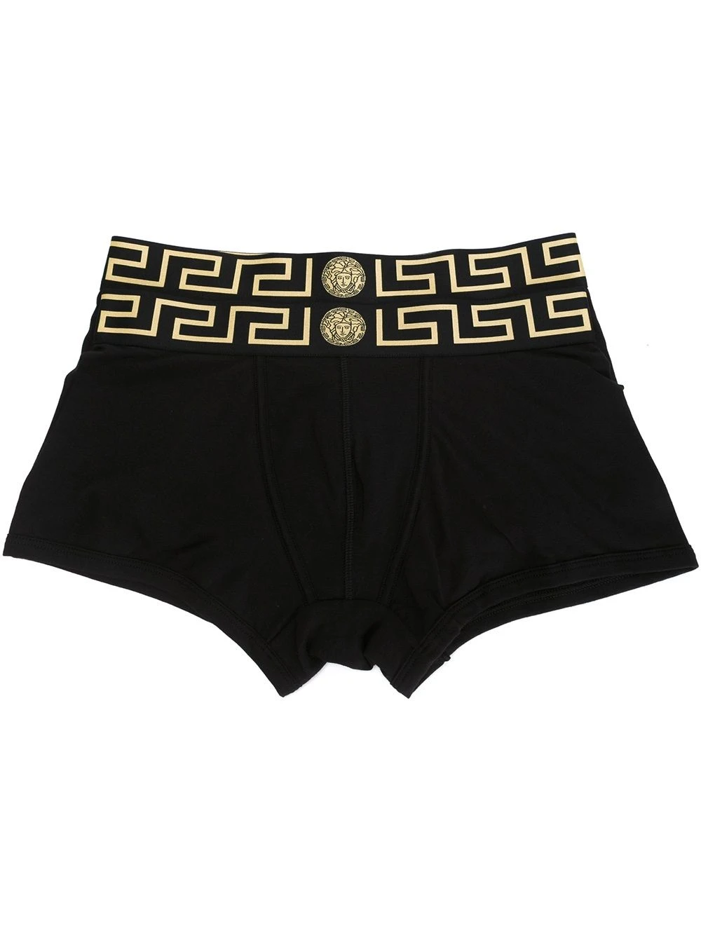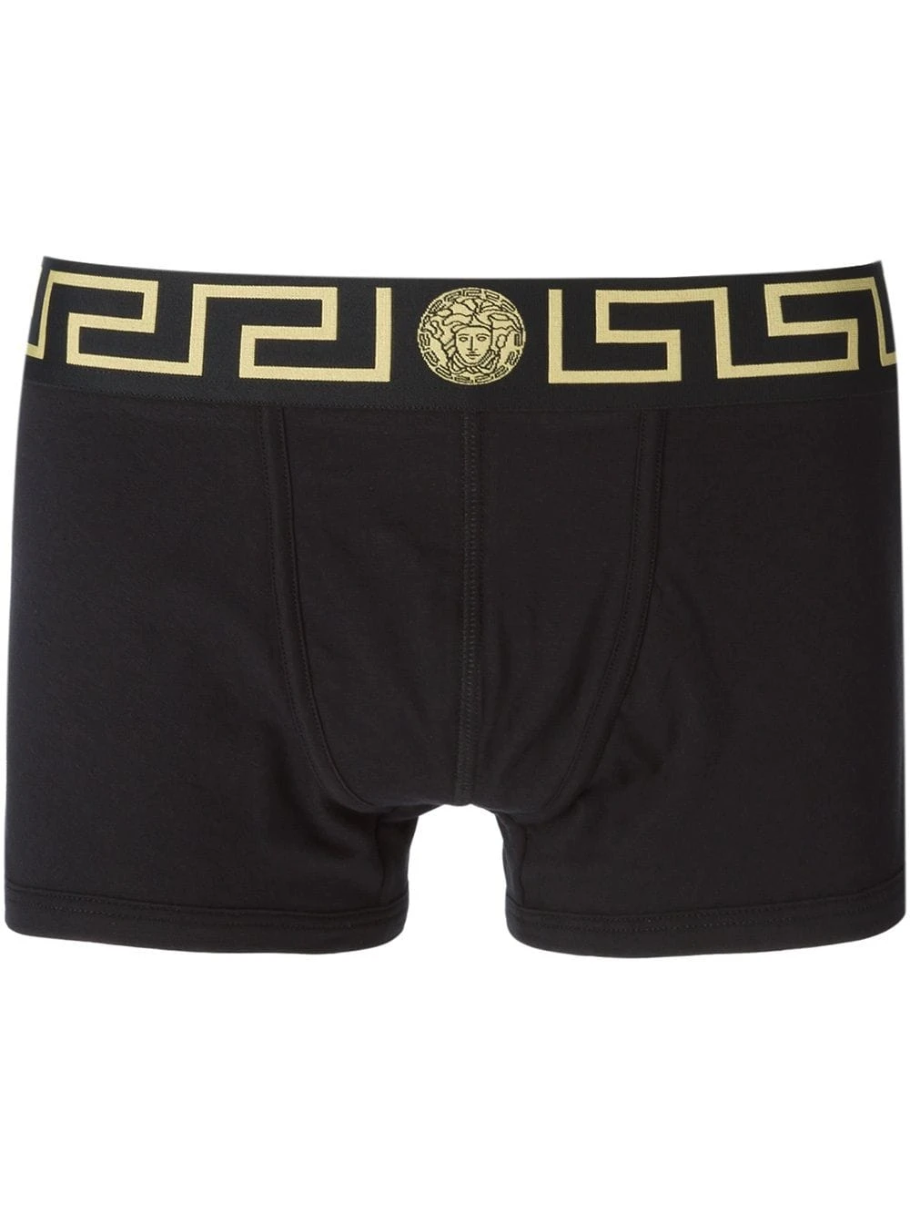 Boxer à taille Greca en coton stretch noir et doré Versace avec bordure élastique. Les sous-vêtements et la lingerie doivent être essayés par dessus vos propres vêtements.