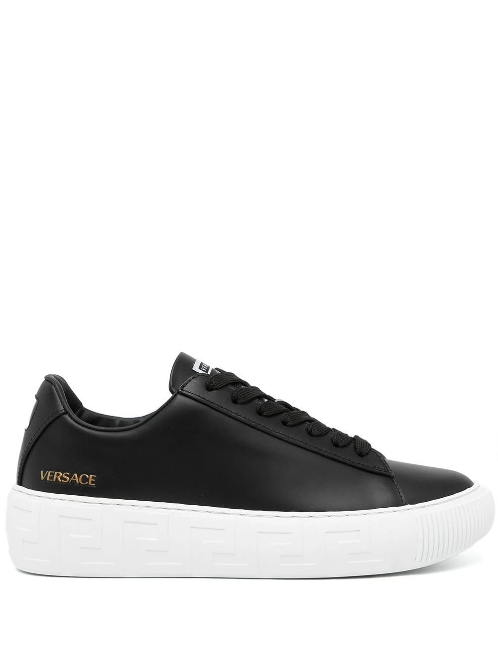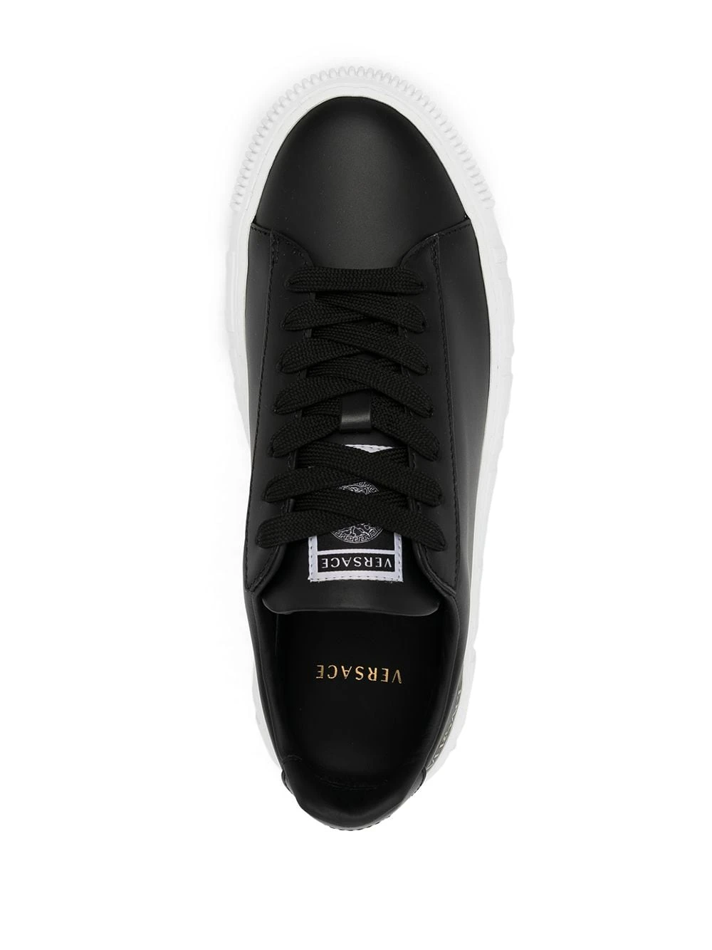 Logo embossé sur le côté, languette à patch logo, contrefort à logo, bout rond, fermeture à lacer sur le devant. Couleur : noir. Matière : cuir.